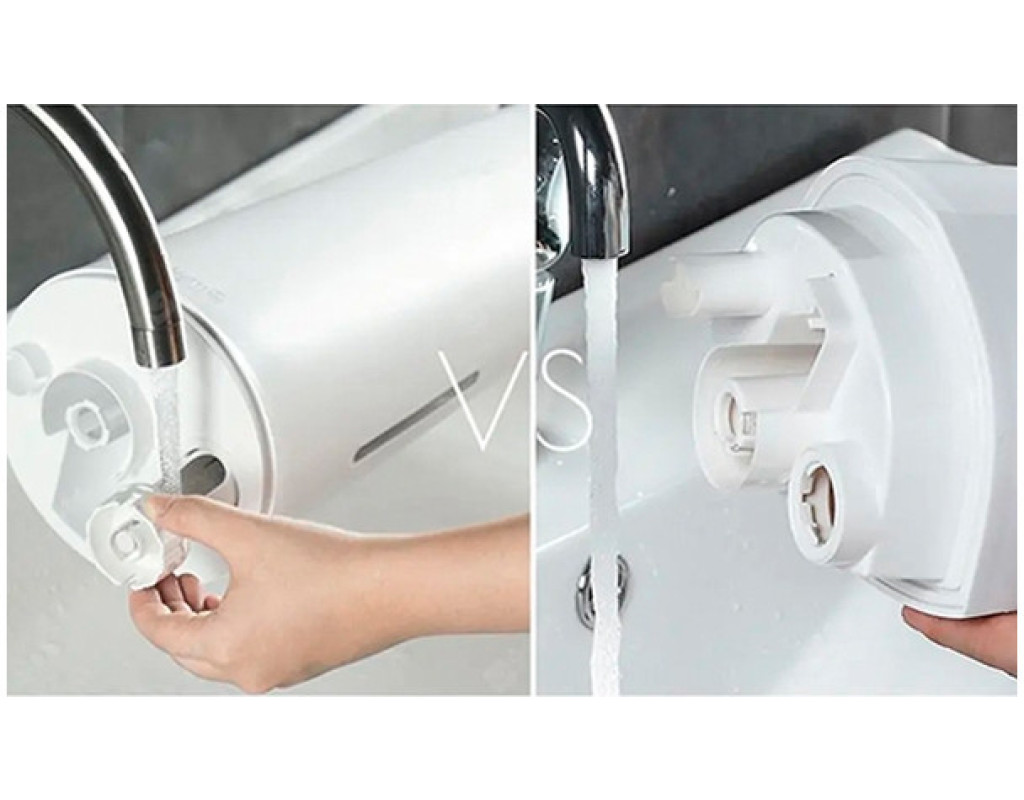 Два способи дозаправки Зволожувач має спеціальну конструкцію водяного клапана з боковим отвором, яка дозволяє заливати воду в бак при вертикальному і горизонтальному розташуванні приладу. Заливний канал висувається на 14 см, завдяки цьому ви зможете заливати воду в резервуар навіть в раковині з низьким краном, поклавши прилад на бік.