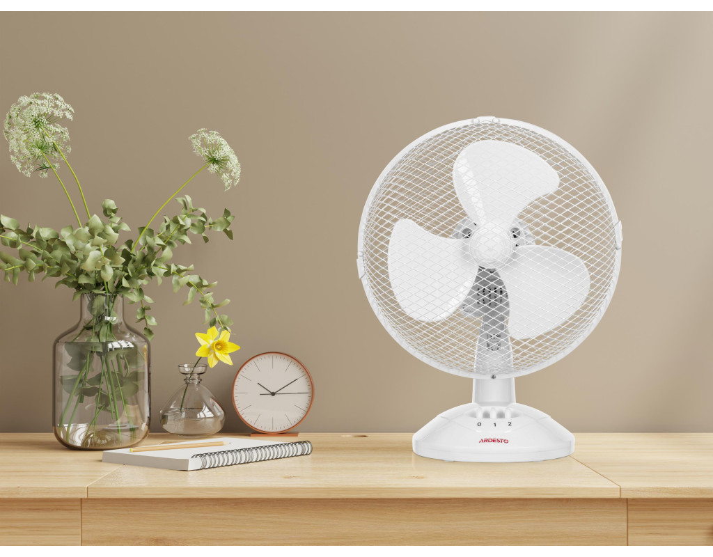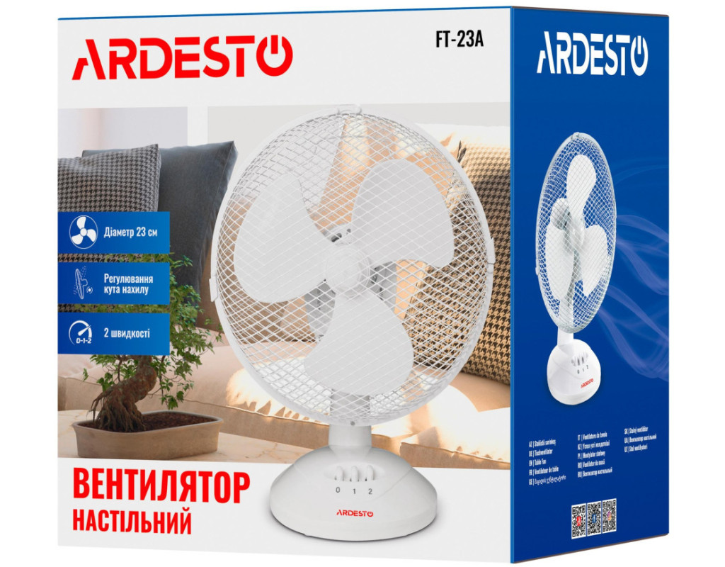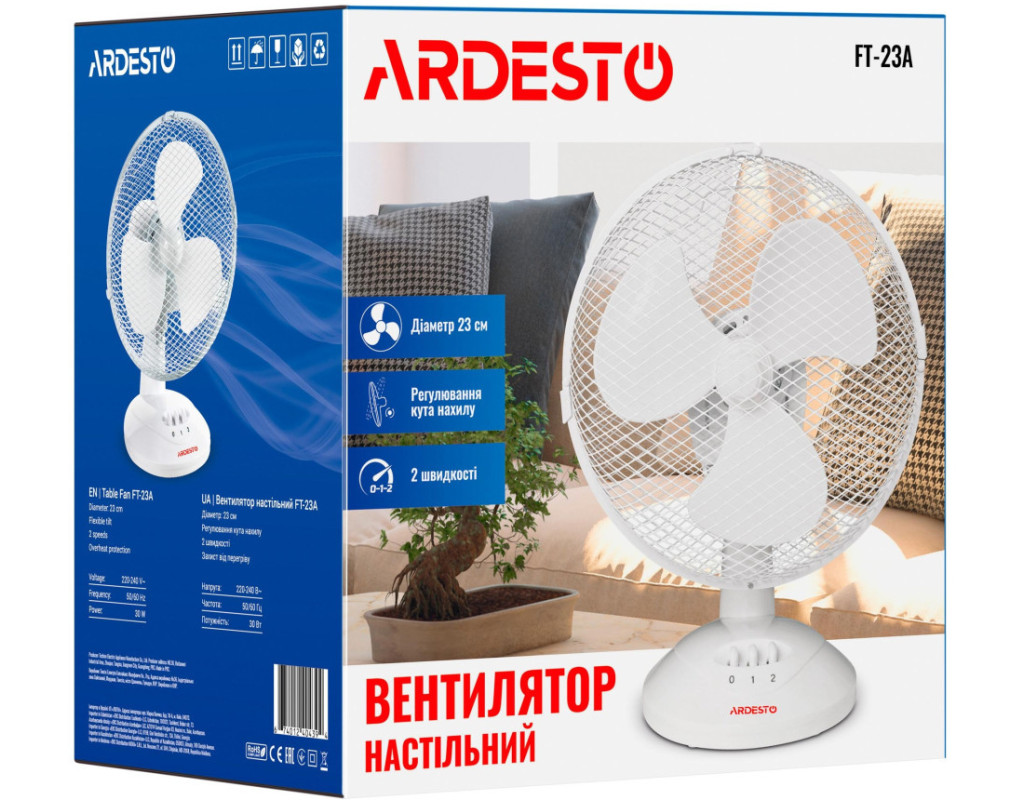 | Настільний вентилятор ARDESTO FT-23A білого кольору на круглій опорі пасуватиме до будь-якого інтер’єру. Потужність вентилятора становить 30 Вт, а рівень шуму – 60 дБ. Керування механічне – за допомогою двох клавіш перемикання швидкості. |
