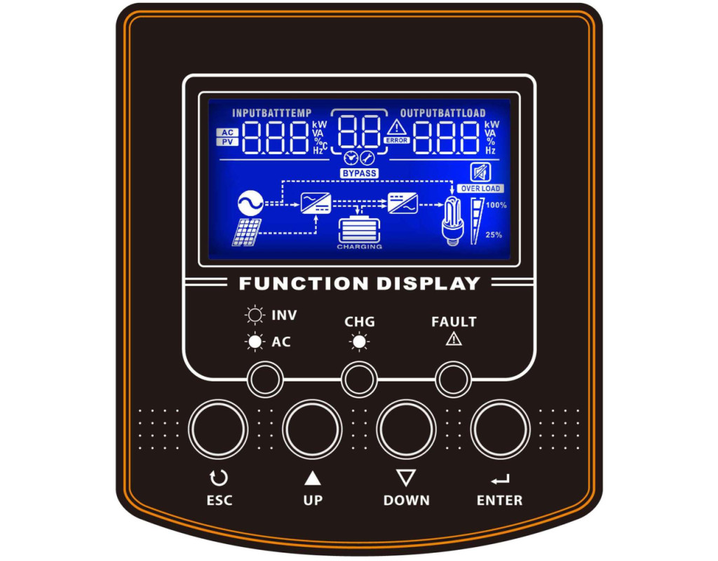 поєднуючи функції інвертора, сонячного зарядного пристрою та зарядного пристрою для акумулятора, щоб забезпечити підтримку безперебійного живлення з портативним розміром.