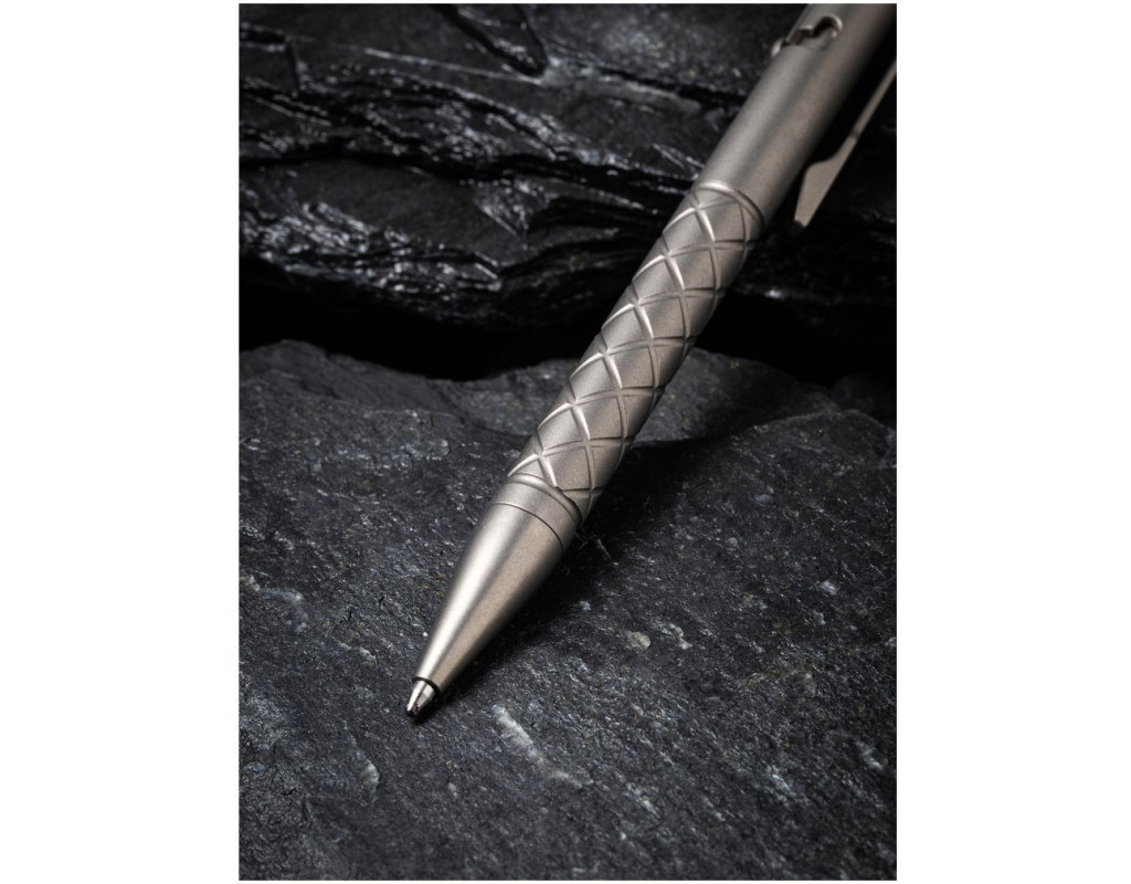Ручка Civivi Coronet виготовлена з преміальних матеріалів та має мінімалістичний дизайн, який гідно оцінять любителі якісних та практичних речей. Корпус виконаний з титану 6AL4V, що вважається найміцнішим і найтвердішим титановим сплавом з найвищими механічними властивостями. Метал не піддається іржавінню та несприйнятливий до ударних навантажень, що продовжує термін служби виробу та робить його ідеальним варіантом для повсякденного використання. Ще одна перевага титану — легкість, що позитивно відбивається на вазі аксесуара (лише 28.4 г). Ручка поставляється разом із кульковим стрижнем Easy Flow 9000M, який пише на будь-яких поверхнях, включно з глянцевим папером. У головці конструкції знаходиться спінер, а також наконечник у вигляді міцного склобою для використання в екстрених ситуаціях. Розміри ручки такі: довжина становить 127.4 мм, діаметр корпусу — 9.7 мм, діаметр спінера — 14.3 мм. Фрезерована поверхня металу забезпечує міцне утримання, а титанова кліпса дозволяє фіксувати ручку на одязі та носити її з собою щодня. |