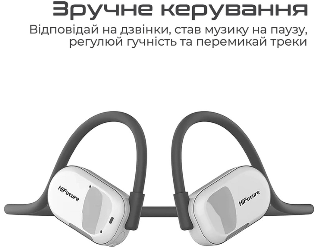 Кісткові навушники FutureMate від HiFuture ідеально підходять для занять спортом і прогулянок, завдяки вологозахисту та дужці із надійною фіксацією. Особливості: