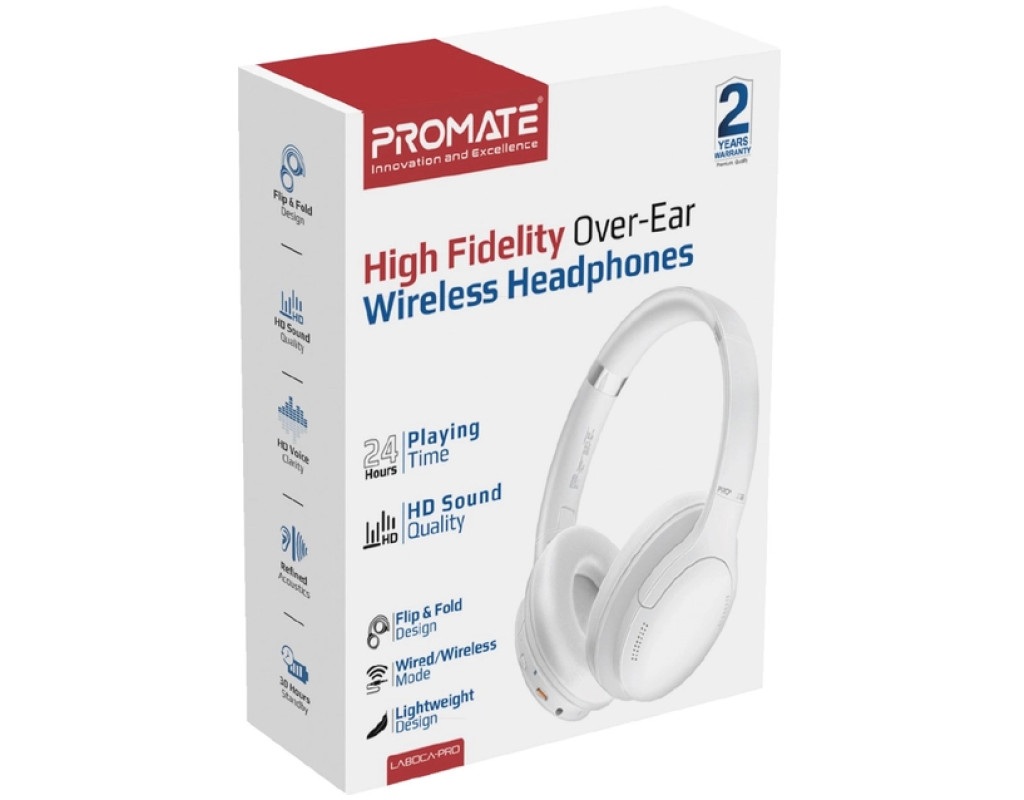 LaBoca-Pro - покращена версія популярних бездротових навушників LaBoca від Promate. Збільшений запас автономності, остання версія Bluetooth 5.3, першокласне звучання та стильний Flip & Fold формат роблять навушники ідеальним варіантом для поціновувачів музики. Особливості: