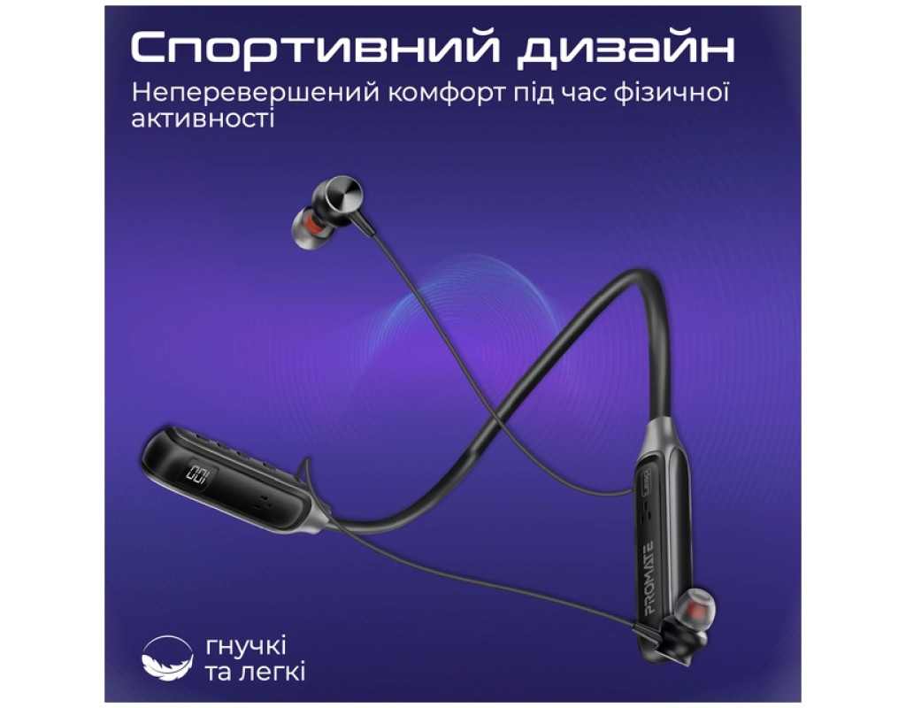 Ергономічна форма, до 150 годин автономної роботи та стильний дизайн. Leap від Promate - ідеальні навушники для тих, хто веде активний спосіб життя. Особливості: