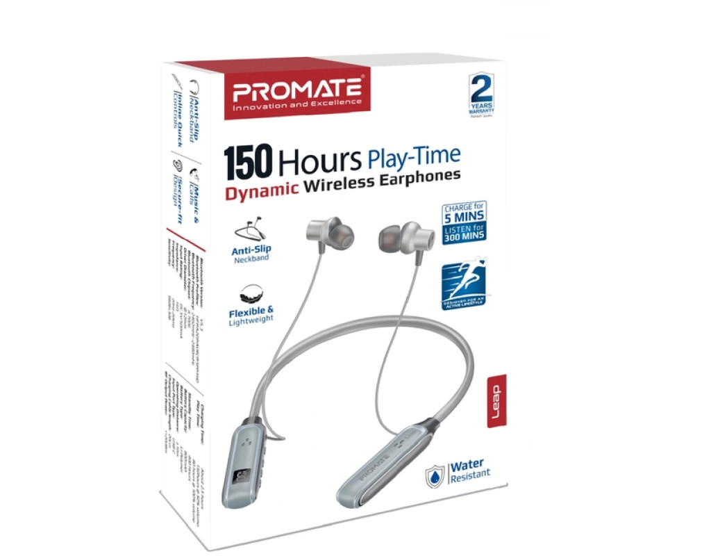 Ергономічна форма, до 150 годин автономної роботи та стильний дизайн. Leap від Promate - ідеальні навушники для тих, хто веде активний спосіб життя. Особливості: