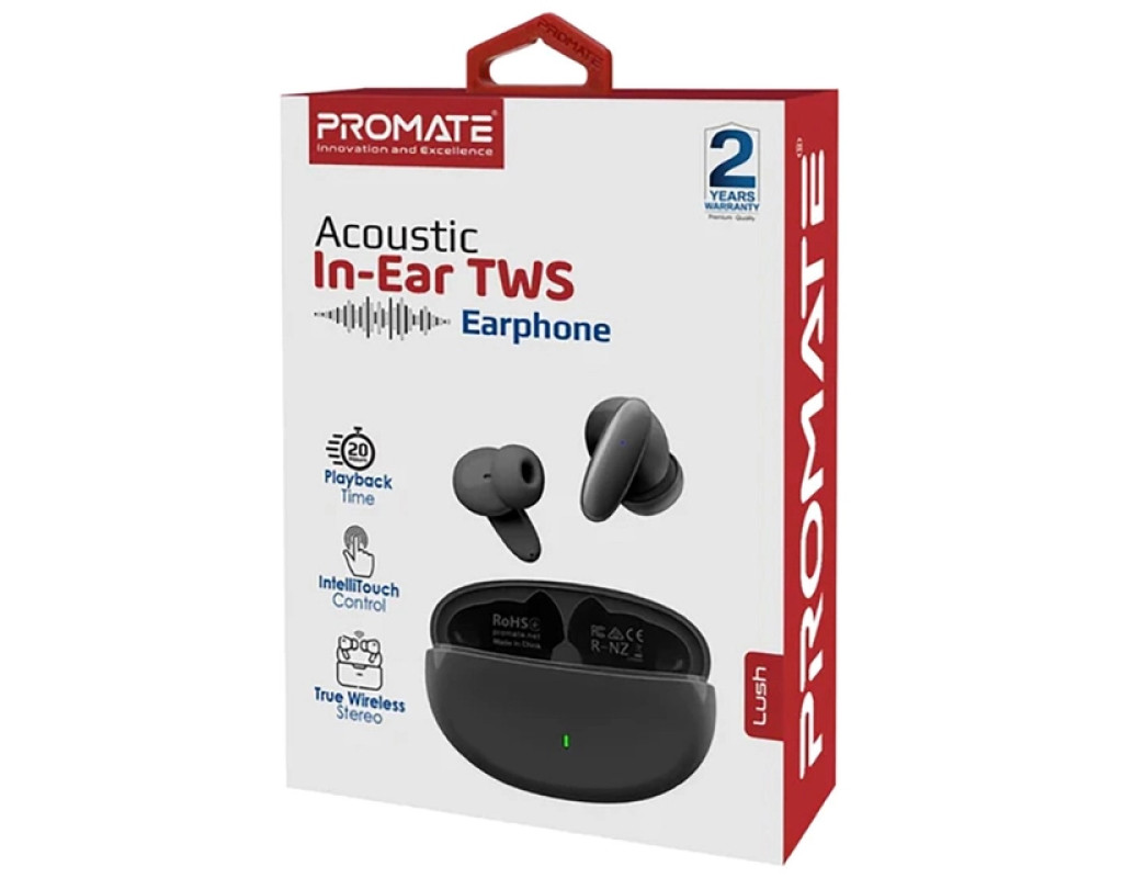 Вакуумні TWS навушники Lush від Promate із соковитим басовим звучанням та чутливим мікрофоном дозволяють насолоджуватися музикою та розмовами. А завдяки компактному футляру та значній автономності стануть відмінними компаньйонами протягом дня. Особливості: