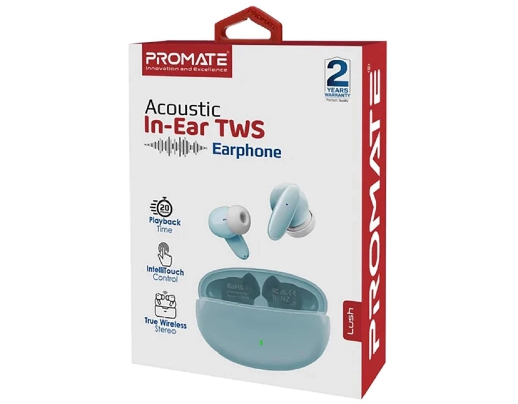 Вакуумні TWS навушники Lush від Promate із соковитим басовим звучанням та чутливим мікрофоном дозволяють насолоджуватися музикою та розмовами. А завдяки компактному футляру та значній автономності стануть відмінними компаньйонами протягом дня. Особливості: