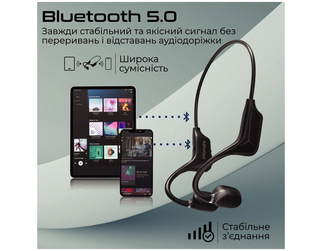 Ripple - ергономічні спортивні навушники від Promate, розроблені за фірмовою технологією AudioConduct. Завдяки їй, ти будеш чути що відбувається навколо за рахунок відкритої конструкції та одночасно слухати музику або розмовляти по телефону. Особливості: