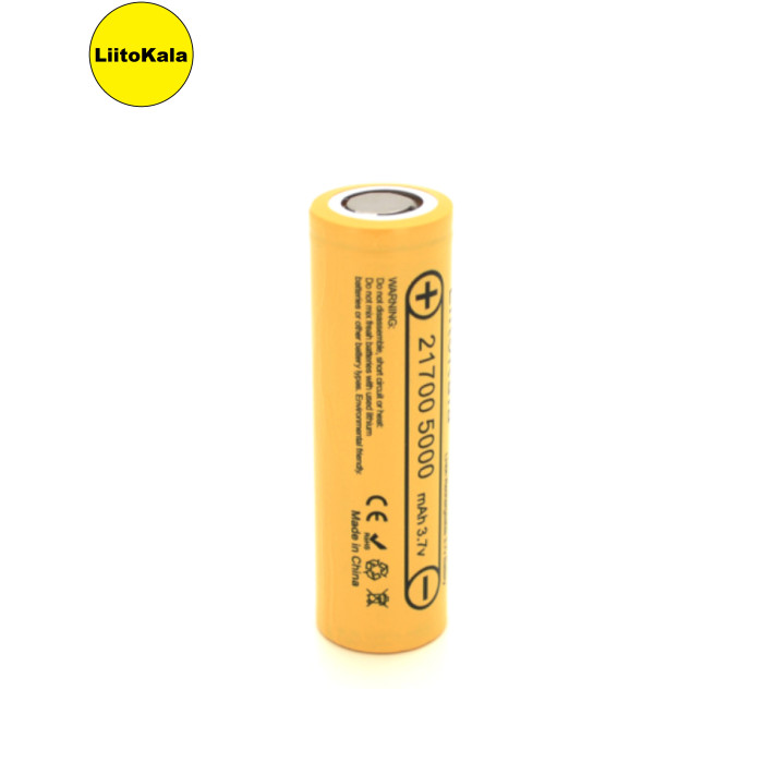 Акумулятор 21700 5000mah, (4700-5100mah) 15A, 3.7V(2.5-4.2V), Yellow Liitokala (Lii-50E / 23384)