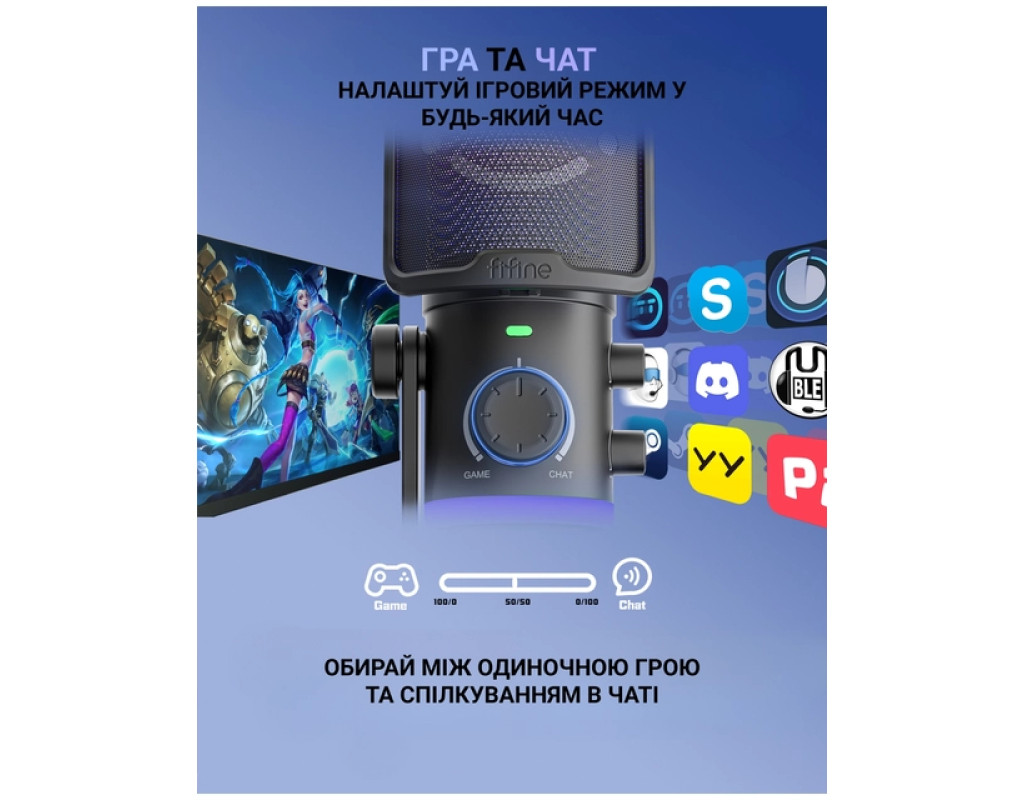AmpliGame AM6 - це спроба Fifine повністю розкрити ігрові мікрофони з набагато кращою функцією балансу в грі та чаті. Однак, він більше орієнтований на комп'ютерні ігри, особливо для гравців з клавіатурою та мишею. Оскільки функція "Гра/Чат" недоступна при використанні з консолями, функція шумозаглушення компенсує недолік конденсаторного мікрофона - надмірну чутливість. Наскільки гучний Discord або внутрішньоігровий чат порівняно з ігровим звуком? Не потрібно виставляти його перед початком гри або вдаватися до спеціальних хитрощів, щоб відкрити вікна налаштувань і внести корективи. Завжди зручніше користуватися регулятором, щоб зробити голос ваших друзів чіткішим у Discord або будь-якому іншому додатку для відеодзвінків, або навпаки, для більшого занурення у гру, зробивши звук голоснішим. Не потрібно турбуватися про складне програмне забезпечення під час інтенсивної гри, щоб відрегулювати гучність. Найпростіший спосіб - збільшити або зменшити гучність, не відволікаючись ні на що. Ви можете наосліп повернути регулятор у напрямку чату. Що робити, якщо рівні звуку гри та голосового чату збалансовані, але ви просто не чуєте, що звучите недостатньо чітко або занадто голосно, щоб почуватися комфортно? Тоді регулятор чутливості стане рятівником, щоб збільшити або зменшити гучність, не порушуючи встановленого співвідношення. На цю мить ви можете використовувати AM6 як ЦАП з підтримкою RGB і напрочуд хорошим мікрофоном для буферизації вашої застарілої гарнітури. З точки зору зручності використання, настільний ЦАП має перевагу в тому, що регулятори розташовано спереду, а не зверху, тому вам не доведеться відчувати роздратування від чищення регуляторів і, таким чином, змінювати тонко налаштовану гучність. І вам не доведеться мати справу з великою кількістю кабелів під час кожного налаштування, лише USB-з'єднання з ігровим комп'ютером і дротова гарнітура, підключена до самого мікрофона. Хоча він недостатньо універсальний, щоб бездоганно працювати на різних платформах, таких як консолі та мобільні пристрої, він дійсно може оптимізувати налаштування на вашому комп'ютері Не кажучи вже про сторонній плагін Reaper, ви можете знайти безліч програм на основі штучного інтелекту, які покращують шумозаглушення. Але що може бути краще, ніж одна з цих функцій, вбудована в мікрофон. Вам не доведеться витрачати купу часу на перегляд відеоуроків і проби та помилки, щоб змусити мікрофон працювати належним чином, а лише одне натискання кнопки шумозаглушення дозволить внутрішній мікросхемі виконати цю клопітку роботу за вас. Навіть проводячи сліпий тест у відносно тихій кімнаті, ви можете одразу визначити, який з мікрофонів з увімкненим шумозаглушенням працює краще. Використання динамічних мікрофонів, якщо вас турбує фон, стало більш відомим фактом, але це не обов'язково підходить всім, особливо тим геймерам, які вже мають досить басовитий голос. AmpliGame AM6 досягає іншого балансу! Завдяки конденсаторному капсулю, який більше фокусується на чистих частотах і функції придушення фону, якість звучання і рівень шуму досягають кращого балансу. Оскільки шумозаглушення не підлягає налаштуванню, конденсаторний капсуль забезпечує не тільки більш яскравий тон, але й, що найголовніше, компенсує зниження чіткості. Простіше кажучи, ви можете використовувати AM6 як звичайний кон