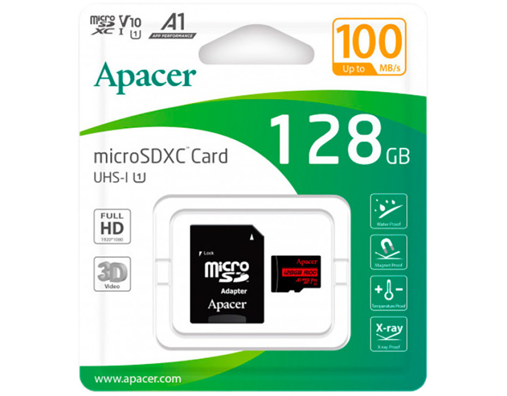 Карта пам'яті Apacer 128GB microSD class 10 UHS-I V10 A1 (AP128GMCSX10UB-R)