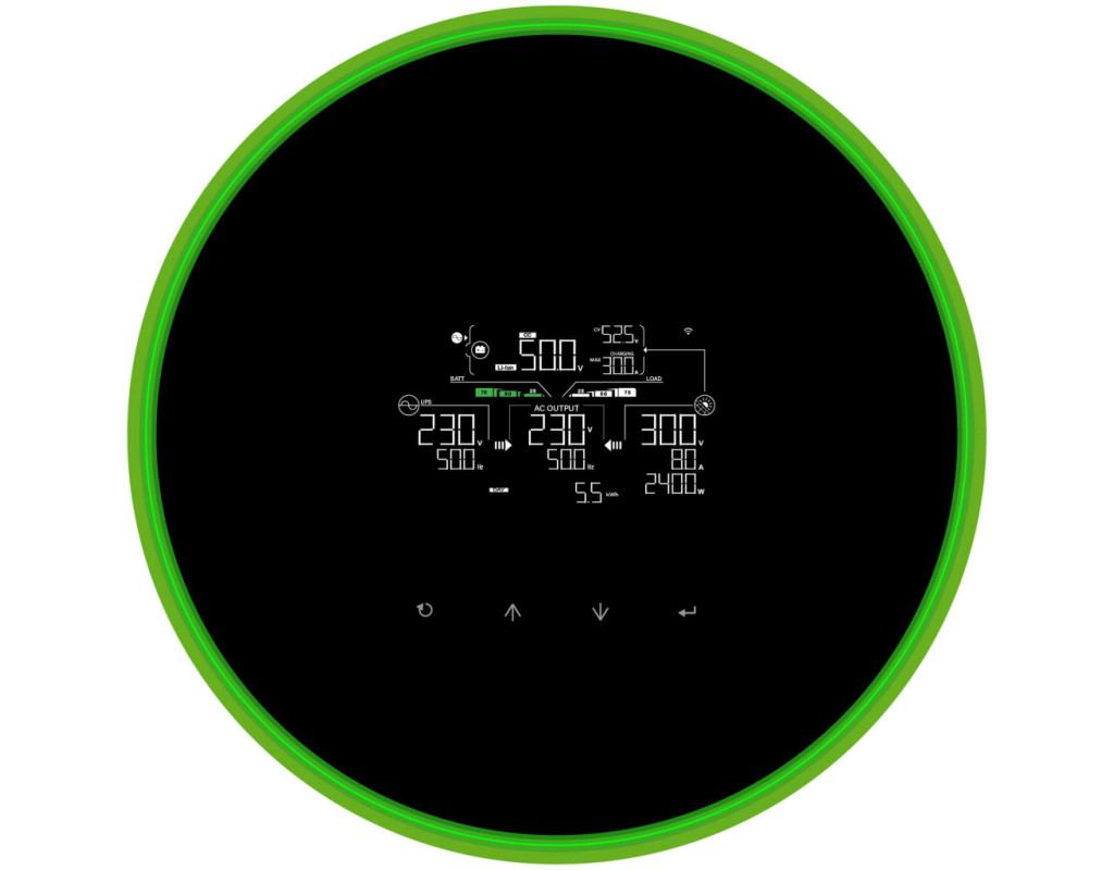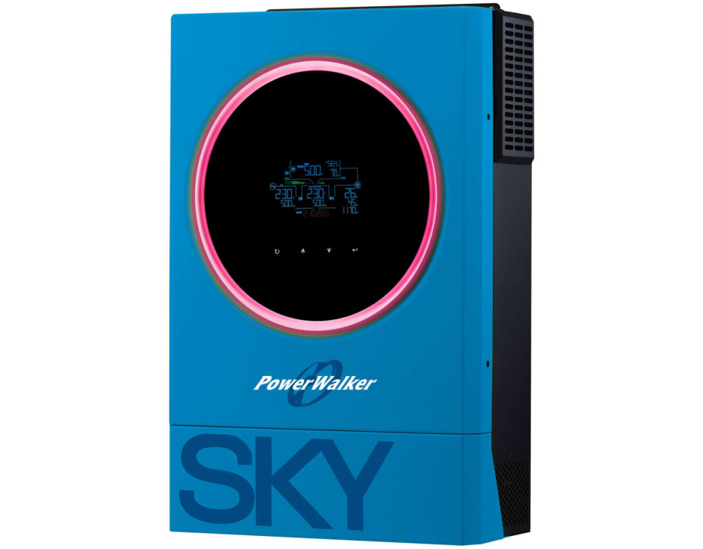 PowerWalker Solar Inverter 5600 SKY OGN є багатофункціональним мережевим інвертором, що поєднує в собі функції інвертора, сонячного зарядного пристрою та управління батареями для забезпечення безперебійного живлення. Його вдосконалений сенсорний РК-дисплей пропонує користувачеві та легкодоступні операції, такі як струм зарядки акумулятора і пріоритет зарядного пристрою змінного/фотоелектричного. Цей гібридний інвертор функціонуватиме як централізоване рішення щодо живлення для об'єднання та координації вхідної потужності мережі, виробництва енергії сонячними панелями, накопиченням енергія в акумуляторній системі та потужністю, що подається назад у мережу.
