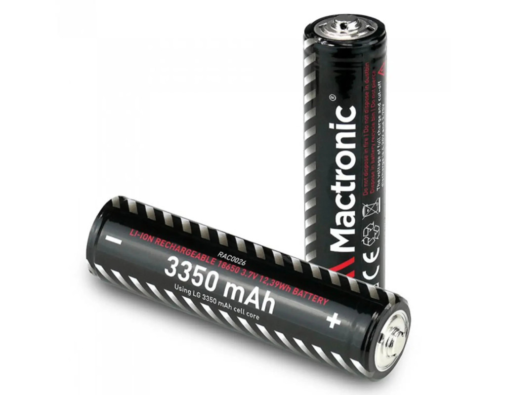 Акумулятор Mactronic Li-ion 18650 3350 mAh це елемент живлення для тактичних ліхтарів Mactronic серії BLACK EYE та NIGHT HUNTER та ряду інших ліхтарів. Він також підійде для портативних пристроїв, що працюють з акумулятором 18650 з випуклим контактом "+" та напругою 3.7V. Час до повної зарядки до 5 годин. Технічні характеристики: