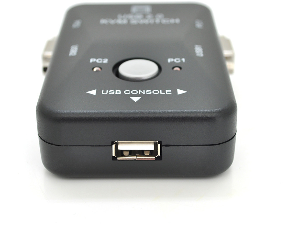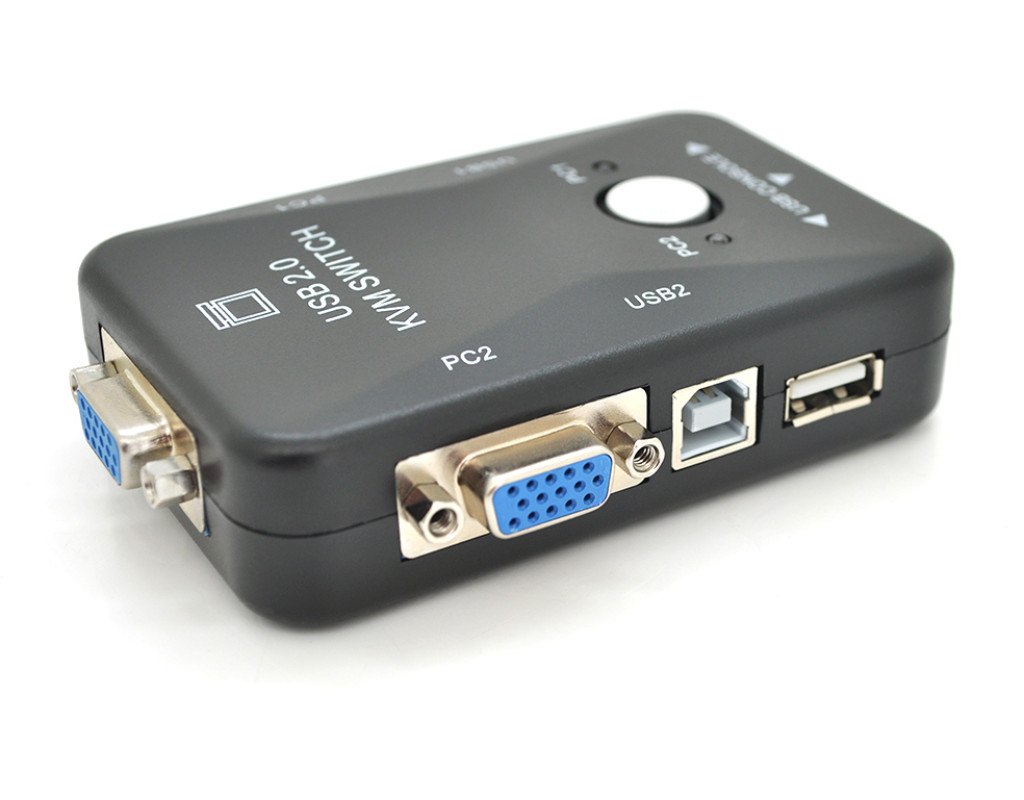 | '2-портовий KVM-перемикач з USB' - це пристрій, який дозволяє керувати двома комп`ютерами за допомогою однієї клавіатури, відеомонітора та миші (KVM), використовуючи підключення USB. За допомогою цього пристрою користувач може легко перемикатися між різними комп`ютерами, необхідними для виконання різних завдань за допомогою загальних периферійних пристроїв. |