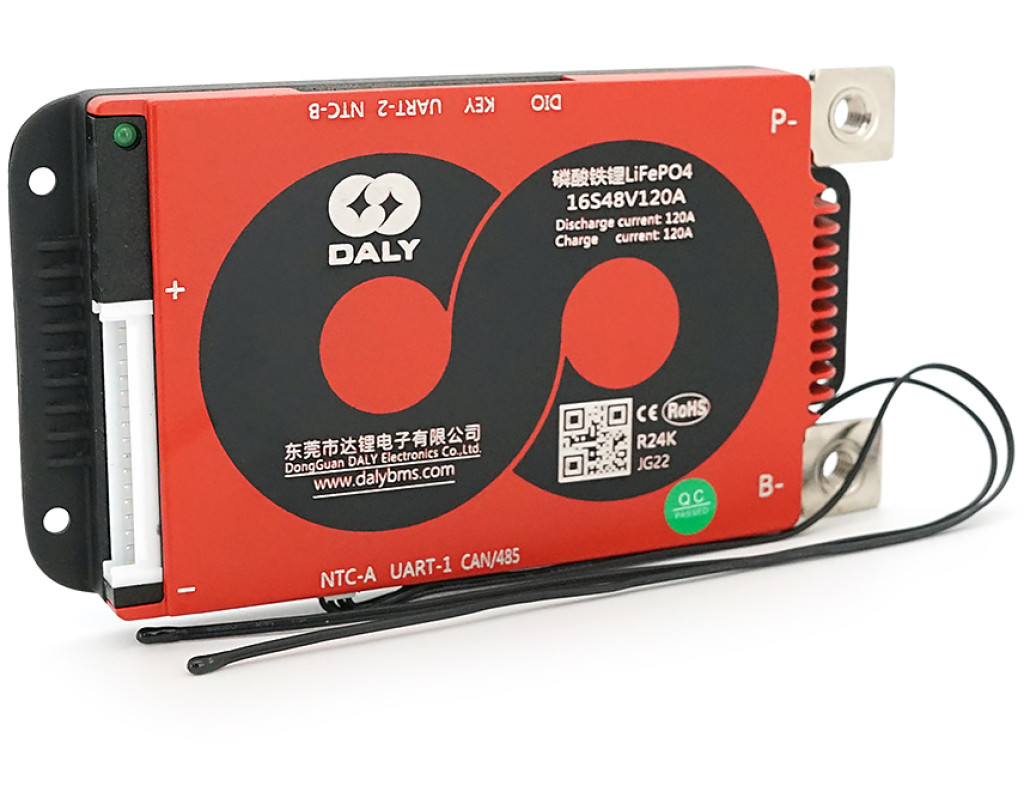 | BMS (Battery Management System) – це електронна плата, яка встановлюється на акумуляторну батарею з метою контролю процесу заряду / розряду, моніторингу стану акумулятора та його елементів, контролю температури, кількості циклів заряду / розряду, захисту складових акумуляторної батареї. Основні характеристики Номінальний струм розряду 120А Номінальний струм заряду 60А (рекомендована ємність АКБ 120Ач) Номінальна напруга заряду 58.4В Струм балансування 30+-10 мА Функції пасивного вирівнювання Напруга включення пасивного вирівнювання 3,4В Захист від перезаряду Напруга включення захисту від перезаряду (на 1 комірку) 3,75±0.05В Час спрацьовування захисту від перезаряду (на 1 комірку) 1±0.5сек Напруга відключення захисту від перезаряду (на 1 комірку) 3,65±0.05В Час відключення захисту від перезаряду (на 1 комірку) 1±0.5сек Захист від перерозряду Напруга захисту від перерозряду (на 1 комірку) 2.2±0.05В Час спрацьовування захисту від перерозряду 1±0.5сек. Напруга відключення захисту від перерозряду 2,21±0.05В Час вимкнення захисту від перерозряду 1±0.5сек Захист від перевантаження струмом заряду / розряду Струм захисту від перевантаження струмом розряду 144±3%А Затримка захисту від перевантаження струмом розряду 1±0.5сек Струм захисту від перевантаження заряду 180±3% А Час спрацьовування захисту 1±0.5сек Затримка захисту від короткого замикання 10-500мсек Опір відкритого контуру ланцюга головного ланцюга <20 mΩ Струм власного споживання під час роботи <<35 mA (не включаючи струм власного споживання) Струм власного споживання в режимі сну <800 uA Габарити 212*95*20 мм Похибка обладнання Точність визначення струму: ≤(±3%FSR) Точність визначення напруги: ≤±15 мВ Робоча температура: -40℃~85℃ Відносна вологість: 5% ~ 90% |