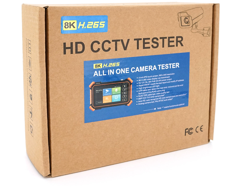 | IPC-1910 PLUS – тестер відеосигналу з сенсорним дисплеєм, являє собою малогабаритний електронно-вимірювальний пристрій, що носиться, призначений для налаштування та діагностики систем відеоспостереження. Застосування цього пристрою значно скорочує час на налаштування системи та суттєво підвищує ефективність використання робочого часу установників. Особливості Тестер підтримує камери всіх стандартів: HD-TVI та HD-CVI (до 8 Мп), AHD (до 8 Мп), IP (8K), Analog Підключення до IP-відеокамерів через встановлені мобільні програми Dahua та Hikvision Відображає IP-відеокамери з роздільною здатністю до 8К як за протоколом ONVIF, так і по кастомізованим IP-протоколам відомих виробників. Сканування адрес IP-камер у мережі, сканування портів, пінг адрес Вшитий в оболонку Android браузер Підтримка RS485 та RS232, аудіотест TVI 5.0 Тест кабелю UTP, тест кабелю RJ45 TDR Додаток для відстеження кабелю з тонером Вбудований Wi-Fi Технічні характеристики Дисплей: сенсорний 4 дюйми, роздільна здатність 960x640 Wi-Fi: 150 Mbps Відеовхід: BNC Тип відеосигналу: PAL, NTSC PoE: 48 В, макс 25.5 Вт USB: 5 В / 2 А PTZ управління: RS485, протоколи Pelco D / P АКБ: 7.4V Lithium Ion Polymer 2600mAh (робота до 9 годин) Управління: сенсорне Живлення: DC 12 В / 3 A Робоча температура: -10°С~+50°С Розміри: 160 x 100 x 45 мм Розмір упаковки: 200 x 165 x 75 мм Вага: 386 г Вага упаковки: 865 г |