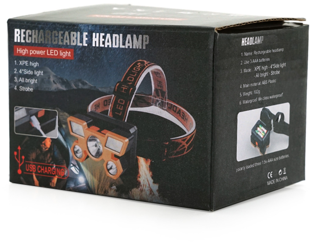 | Тип ліхтаря: налобний Виробник: Voltronic Модель: MJ 2022 Кількість діодів: 5 Тип світлодіода: 3 XPЕ / 2 Cob Кількість режимів: 4 (1LED100%4LED100% / 5LED100% / Flash) Яскравість: 100люмен Спецрежими: ні Потужність: 3W Дальність: 50 м Час роботи від батареї: 2-4 години Час зарядки: 1-2 години Діаметр голови мм: 90x45 пластик Герметичність: IP44 Тип акумулятора: вбудований ААА Місткість акумулятора мАг: 600 / 1.5V Метод заряджання: USB micro кабель Матеріал корпусу: пластик + пластикова оптична лінза Колір корпусу:сірий / чорний Вага: 70гр Комплектація: USB micro кабель, ліхтар |