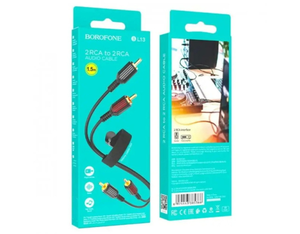 Кабель Borofone BL13 2RCA (тато) => 2хRCA (тато) призначений для передачі аудіо сигналу між пристроями. Він має форму круглого перерізу та довжину 1,5 метра. Колір чорний. Поставляється в упаковці типу "Box". |