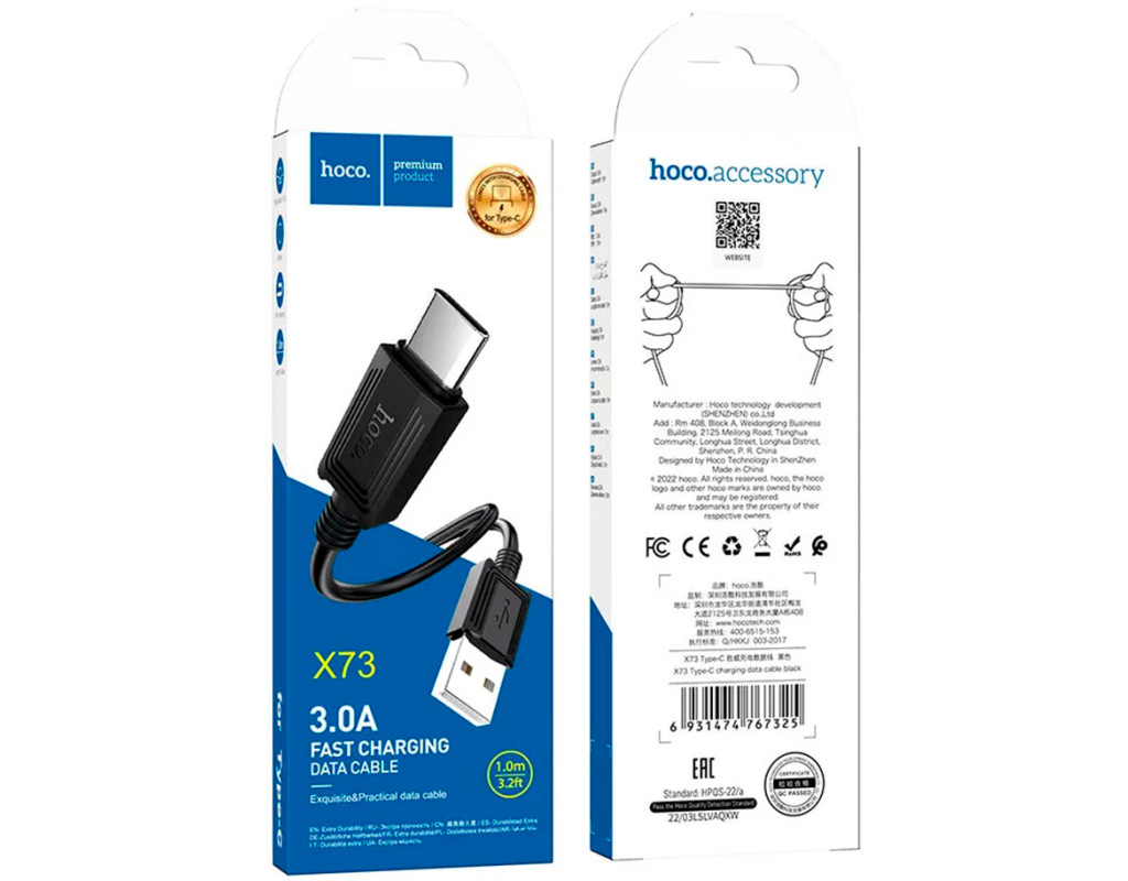 Кабель Hoco X73, Type-C-USB, 2.4A, Black, довжина 1м, BOX
