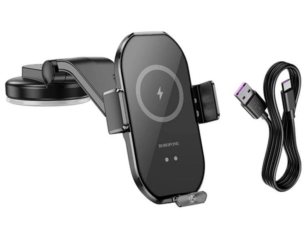 | Матеріал міцний пластик Тримач-затискач(ширина 60-85мм) Бездротова зарядка Кабель USB / Type-C 1 метр Розміри 130*120*85мм Колір чорний Вага 295грам |