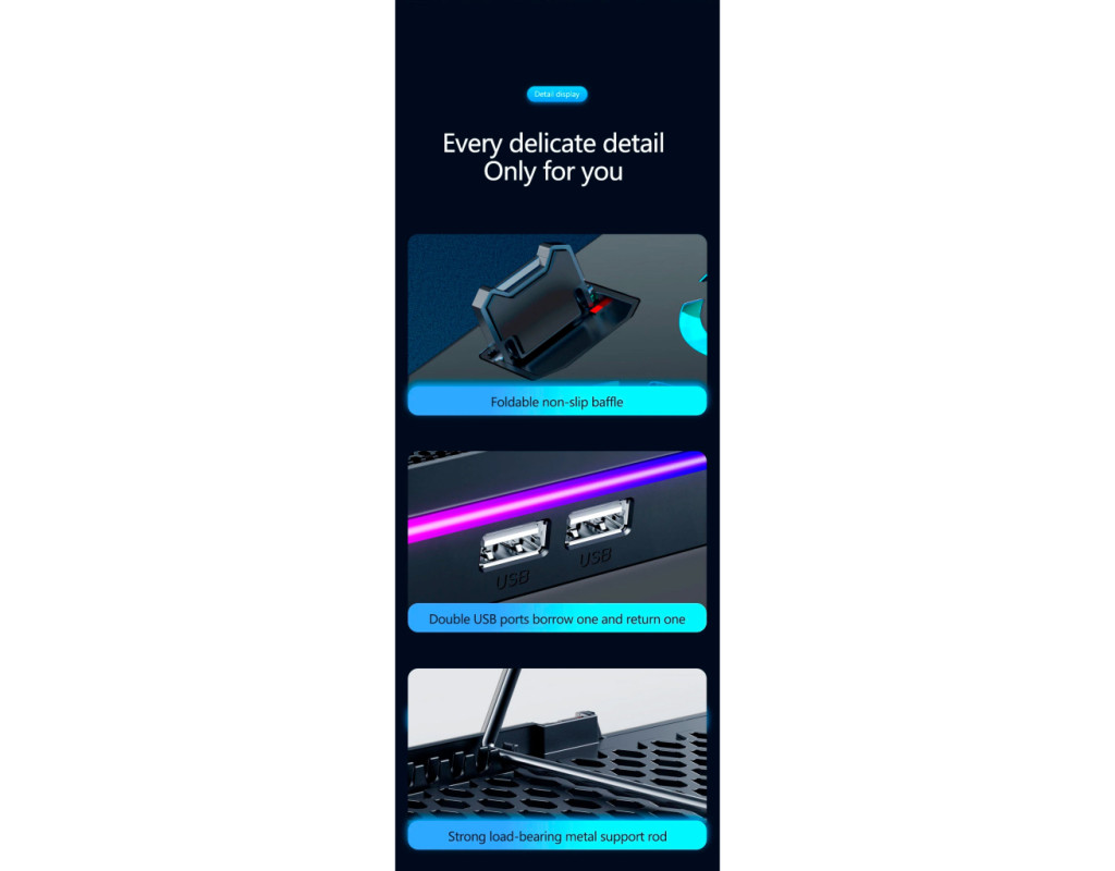 Ice Coorel K15D — ефективне охолодження та комфорт для роботи з ноутбуком Підставка Ice Coorel K15D — це ідеальне рішення для тих, хто шукає компактність, потужне охолодження та стильний дизайн. Вона не тільки забезпечує зручний нахил для комфортної роботи, а й ефективно відводить тепло, знижуючи ризик перегріву ноутбука. Компактність та сумісність Підходить для ноутбуків з діагоналлю від 10 до 19 дюймів, тому чудово підійде як для офісного, так і для геймерського ноутбука Потужне охолодження Вбудований вентилятор 60 мм із швидкістю обертання 2550±10% об/хв забезпечує стабільний повітряний потік, необхідний для ефективного охолодження навіть під час високих навантажень. Якісні матеріали Корпус виготовлений з пластику та алюмінію, що забезпечує довговічність конструкції й хорошу теплопровідність. Додаткові можливості: - 2 порти USB 2.0 — для заряджання або підключення пристроїв