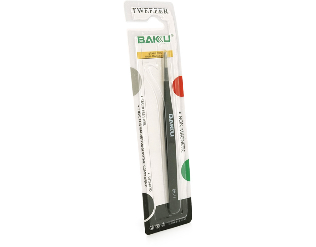 | Опис: Пінцет прямий BAKU BK-11ESD із чорним антистатичним покриттям - це інструмент, призначений для точної та акуратної роботи із взаємодіючими електричними компонентами. Характеристики: 1. Пряма форма пінцету 2. Матеріал: сталь з антистатичним покриттям 3. Колір: чорний 4. Модель: BAKU BK-11ESD 5. Підходить для роботи з електричними компонентами 6. Забезпечує надійне захоплення та утримання елементів |
