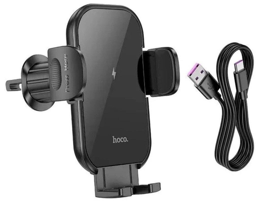 | Матеріал міцний пластик Тримач-затискач(ширина 50-87мм) Кріплення на решітку Бездротова зарядка Кабель USB / Type-C 1 метр Розміри 120*110*80мм Колір чорний Вага 185грам |