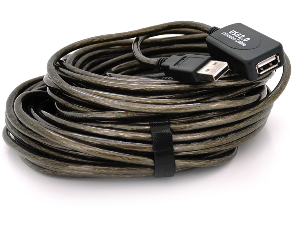 Активний подовжувач USB 2.0 AM / AF, 15m, прозорий з чіпом Q40