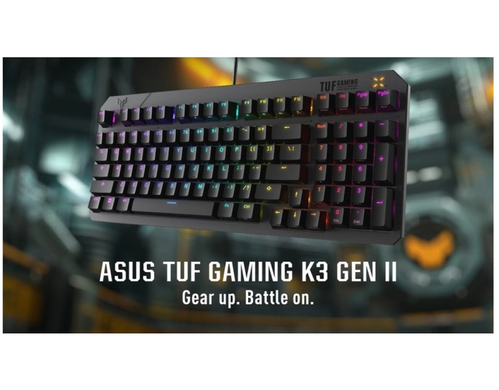 Asus TUF Gaming K3 Gen II — портативна геймерська клавіатура, яка підійде для ігор, розваг, а також роботи чи навчання. Створена для тих, хто не є професіоналом в іграх, але інколи відпочиває за проходженням деяких раундів в улюбленій "стрілялці" чи стратегії. Клавіатура повнорозмірна, має цифровий блок і програмовані клавіші для комфорту та продуктивності користувача. Завдяки наявності довговічних оптико-механічних перемикачів буде довго слугувати власнику. Клавіші розраховані на 100 млн натискань. При одночасному натисканні кількох клавіш кожен дотик обробляється коректно, що дозволяє миттєво змінити зброю чи інструмент, використати заклинання тощо. Ступінь захисту IP57 гарантує повний захист клавіатури від бруду та вологи. Вона навіть може витримати занурення у воду глибиною до одного метра на термін до 30 хвилин. Тому можна не турбуватися про можливість пошкодження клавіатури внаслідок потрапляння вологи. Дизайн пристрою лаконічний, виконаний у чорному кольорі, а яскрава RGB-підсвітка з Aura Sync підкреслює приналежність до геймерського стилю. Знімна верхня кришка дозволяє легко персоналізувати клавіатуру та спрощує обслуговування. Гнучкий та міцний кабель довжиною 2 м забезпечить свободу рухів та дій гравця. |