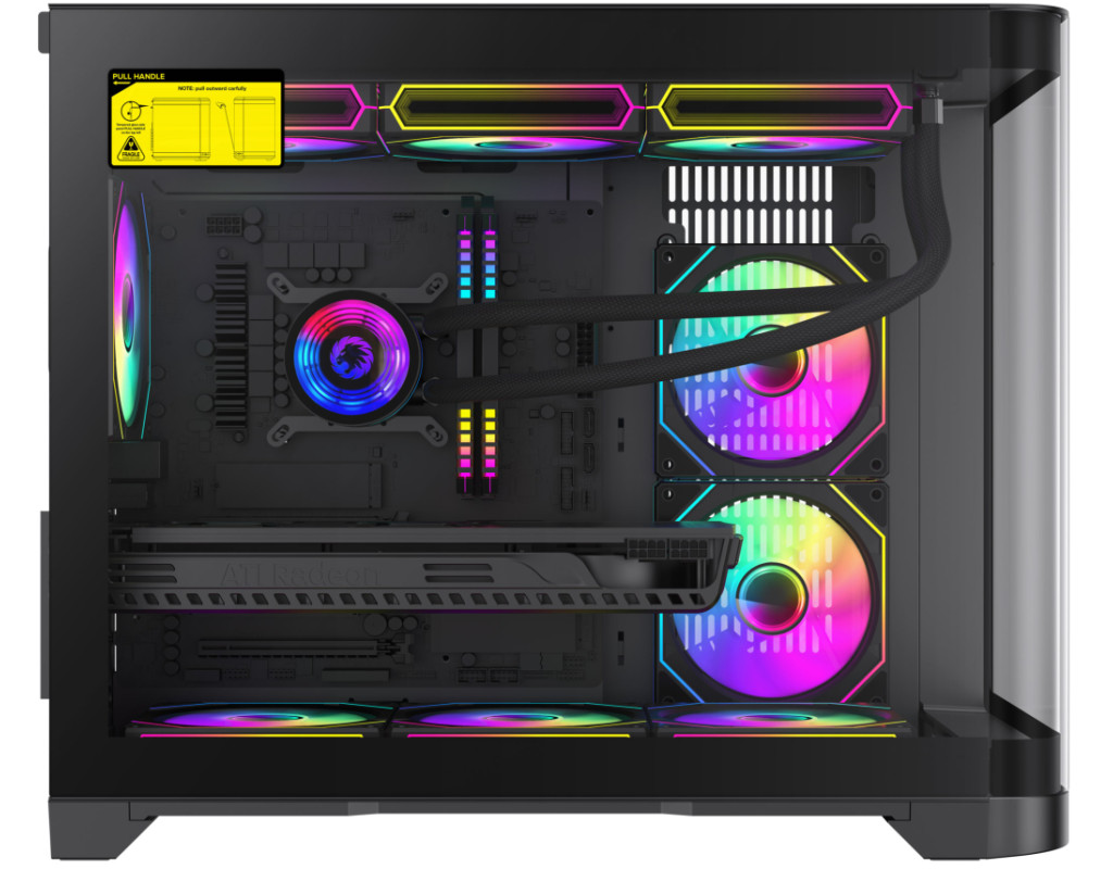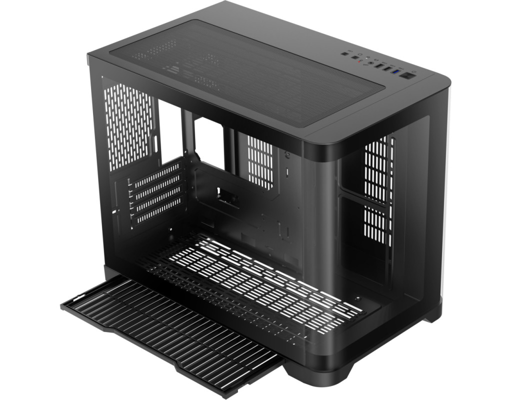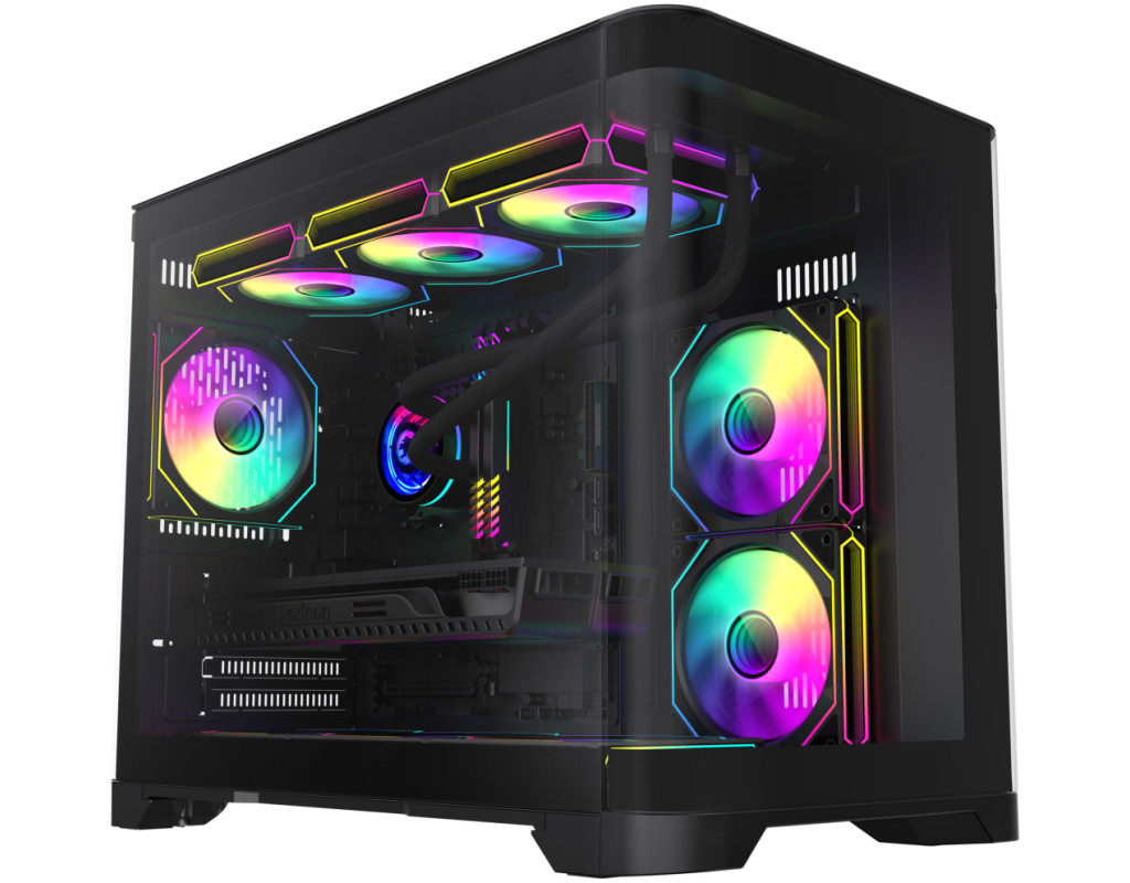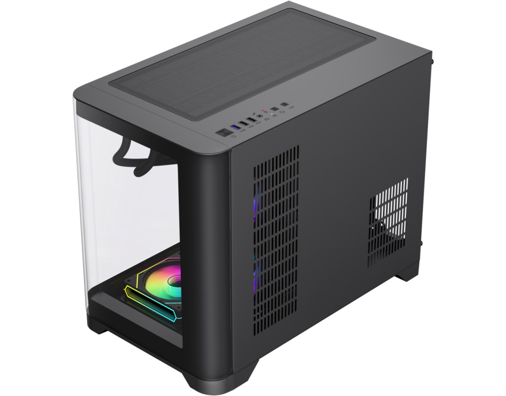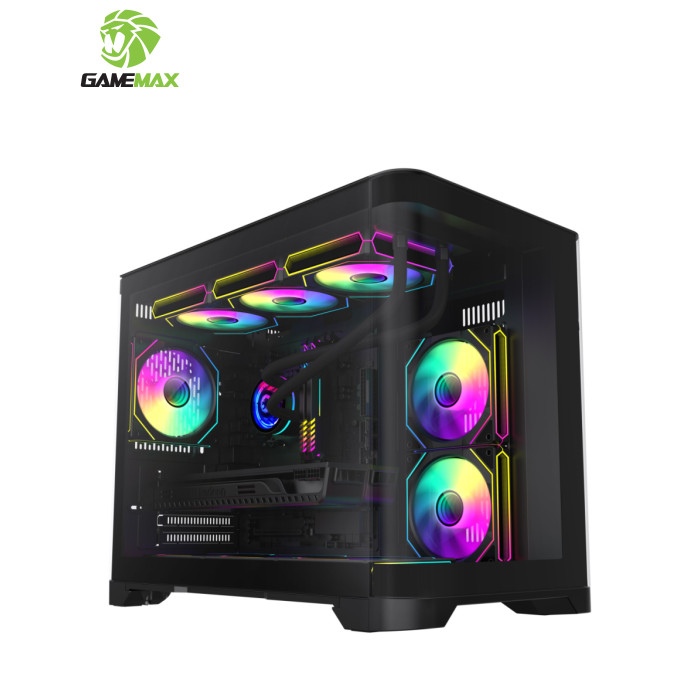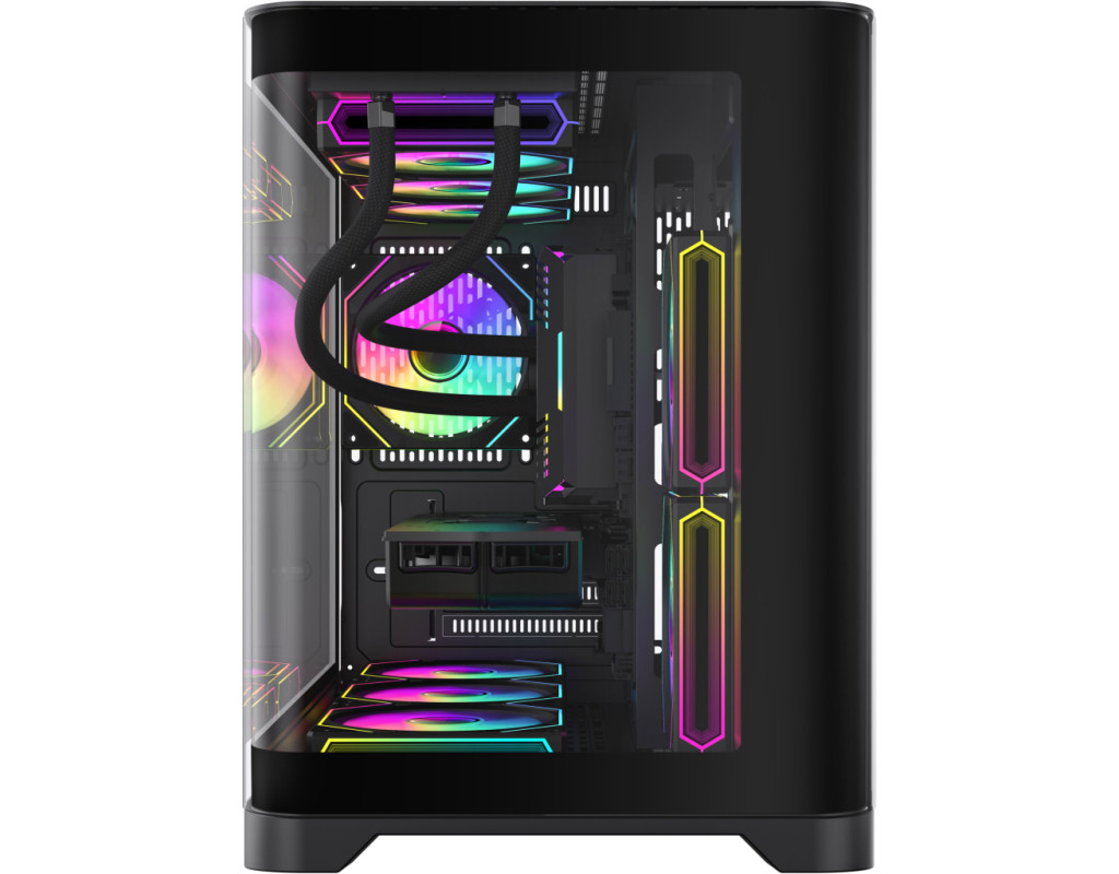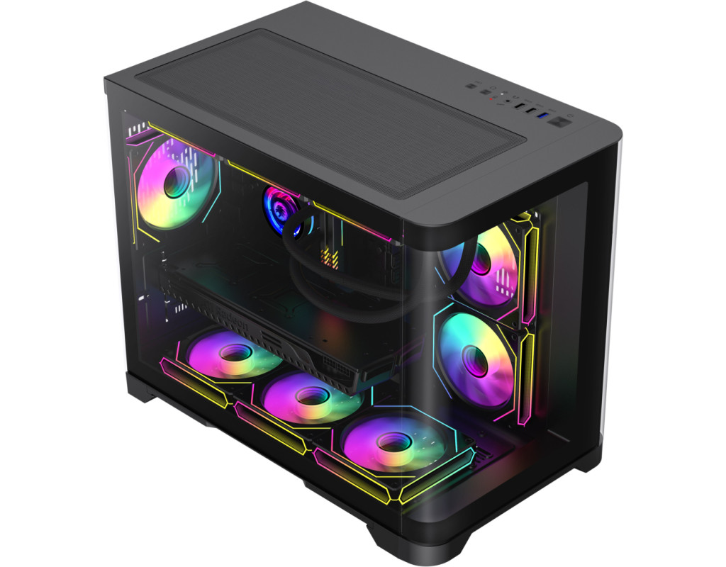 | Корпус для ПК Gamemax HYPE-M Black – це відмінний вибір для геймерів, які прагнуть втілити в життя високопродуктивну і стильну систему. Пропонуючи видатні дизайнерські рішення та широкі можливості адаптації, цей геймерський корпус Miditower ідеально доповнить вашу ігрову станцію, надаючи не лише функціональність, а й естетичне задоволення. Однією з центральних особливостей Gamemax HYPE-M є його унікальний шлях повітряного потоку, що забезпечує оптимальну циркуляцію повітря. Три встановлені 120-мм вентилятори ARGB, розташовані два знизу та один на задній панелі, сприяють чудовому охолодженню компонентів. Корпус також підтримує установку додаткових вентиляторів та систем рідинного охолодження, зокрема радіаторів розміром до 360 мм на верхній панелі та 240 мм на бічній панелі, що робить можливим максимальну продуктивність при мінімальному нагріванні. Наявний пиловий фільтр допомагає утримувати ваш комп'ютер від накопичення пилу, зберігаючи всі компоненти у належному стані. Геймерам, які цінують стиль, безперечно сподобається прозора передня панель та подвійна вигнута скляна панель з довершеним дизайном. Це не лише надає можливість милуватися внутрішнім оформленням, але й доповнює загальний вигляд комп’ютера. Розміщення кабелів за допомогою конструкції передньої камери робить інтер’єр акуратним і вільним від безладу, надаючи вашій установці лаконічний вигляд. Gamemax HYPE-M сумісний з різними форм-факторами материнських плат, такими як Mini-ITX та Micro-ATX, що дозволяє користувачам вибирати оптимальні конфігурації для своїх потреб. Примітно, що корпус підтримує встановлення довгих відеокарт до 400 мм та процесорних кулерів з максимальною висотою до 157 мм, що гарантує сумісність навіть з найвимогливішими компонентами. Це забезпечує можливість геймерам без проблем використовувати новітні відеокарти, включаючи флагманські серії NVIDIA або AMD. Ще однією перевагою корпусу є його модерні підсвічувальні елементи, які присутні на кулерах, бічній та задній панелях, створюючи унікальну атмосферу та додаючи шарму ігровому процесу. Контролер вбудованого підсвічування дає змогу легко змінювати кольорові схеми та налаштовувати освітлення під ваш настрій чи стиль гри. На нижній панелі передбачено розташування блоку живлення, що сприяє стабільному функціонуванню системи, залишаючи достатньо простору для внутрішніх компонентів. Серед інших зручних функцій - знімний кошик для HDD, що спрощує процес встановлення та заміни жорстких дисків. Корпус має два внутрішні відсіки 3.5" та три 2.5" для зберігання накопичувачів, забезпечуючи достатній обсяг для різноманітних конфігурацій дискового простору. Для зручності користувачів на передній панелі корпусу розташовані сучасні зовнішні роз'єми, серед яких два аудіо-порти, USB 3.0 та два USB 2.0, що дозволяє швидко та без зайвих зусиль підключати різноманітні периферійні пристрої. Розміри корпусу 280 х 377 х 453 мм та вага 11.54 кг роблять його не лише практичним, але й досить компактним для встановлення у будь-якому просторі. Чорний колір створює відчуття елегантності та стриманості, гармонійно поєднуючись із іншими елементами вашого ігрового сетапу. Gamemax HYPE-M Black – це не просто корпус, це справжнє втілення геймерської мрії, що ідеально поєднує функціональність, компактність та стиль. Його можливості та переваги залишать вас задоволени
