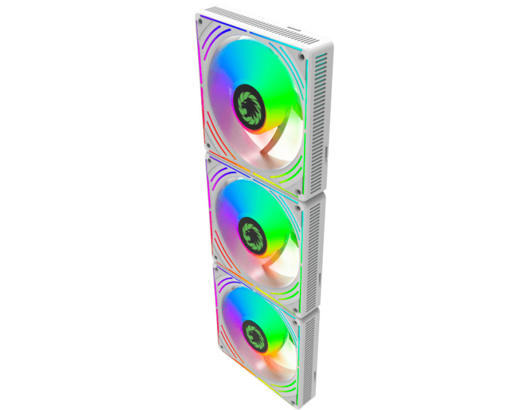 GameMax RA300, вентилятор 3 в 1 з чорною рамою 120 мм, вентилятор ARGB, високопродуктивний вентилятор для корпусу ПК. Інтелектуальне керування швидкістю. 3 повнофункціональні 120-мм вентилятори ARGB PWM. Інтелектуальна температура контролює швидкість на рівні 800 - 1600 ± 10 % обертів за хвилину, підключаючись до 4-контактного роз’єму PWM на материнській платі, тому швидкість вентилятора автоматично контролюється та забезпечує тиху роботу вентиляторів. Ці вентилятори являють собою 3-контактні роз’єми ARGB на 5 В, які один за одним з’єднуються з ХАБом керування ARGB. |