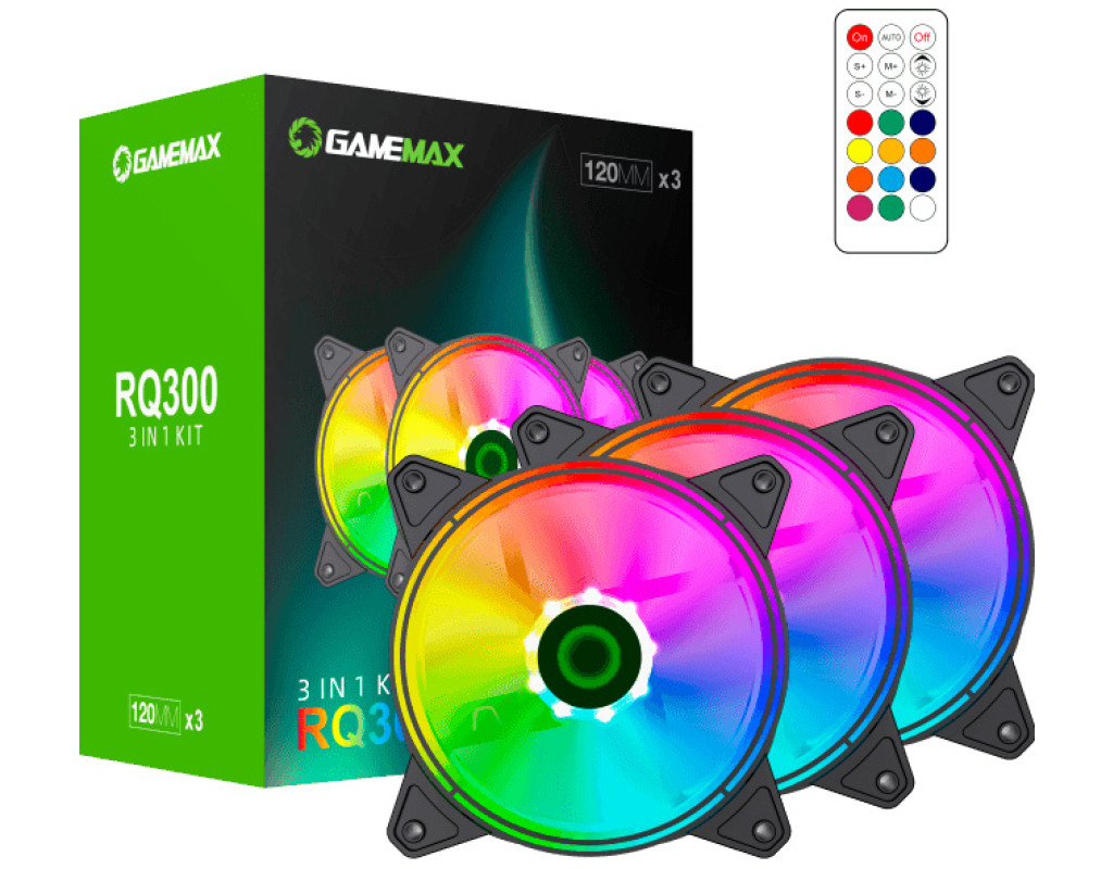 Комплект охолодження RQ300 забезпечує першокласне безшумне охолодження за допомогою всенаправленого адресного освітлення RGB. Цей міцний комплект включає пульт дистанційного керування та три вентилятори FN-12Rainbow-Q із внутрішнім і зовнішнім освітленням, усе, що вам потрібно для створення неймовірної конструкції RGB!