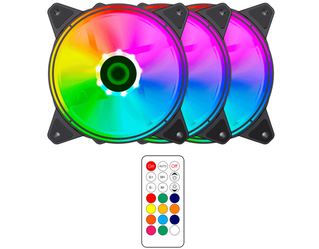 100 ефектів за допомогою дистанційного керування без драйверів. Налаштуйте зовнішній вигляд своєї конструкції та змінюйте її за бажанням за допомогою понад 100 попередньо встановлених вражаючих світлових ефектів. Вибирайте кольори, моделі освітлення, яскравість і швидкість за допомогою бездротового контролера, що входить у комплект, і повністю використовуйте RGB-світлодіоди з адресацією кожного вентилятора! Материнська плата 5 В ARGB SYNC, підтримує підключення до сумісних материнських плат для досягнення загальносистемної синхронізації освітлення RGB, сумісний з Asus Aura, GIGABYTE і MSI RGB. |
