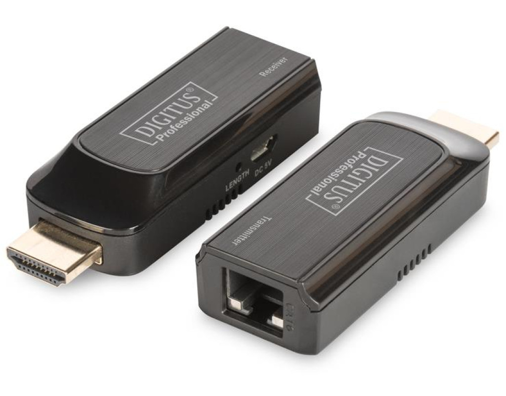 | Набір подовжувачів Mini HDMI від DIGITUS збільшує максимальну довжину кабелів HDMI до 50 м, при цьому між передавачем і приймачем використовується тільки простий мережевий кабель (Cat 6 / 6A). Підтримує максимальний дозвіл відео 1080p / 60 Гц. Електроживлення забезпечується за допомогою кабелю Micro USB. Завдяки цій функції і ультракомпактному дизайну комплект подовжувача можна легко і непомітно розташувати практично скрізь. |