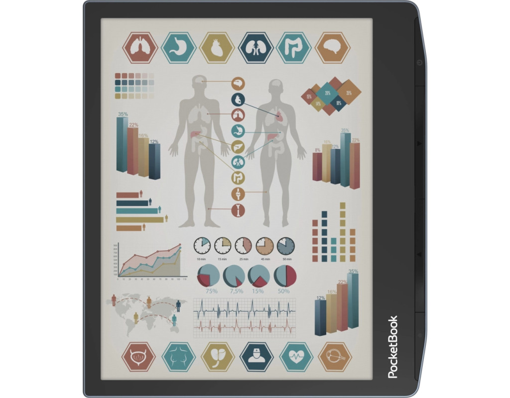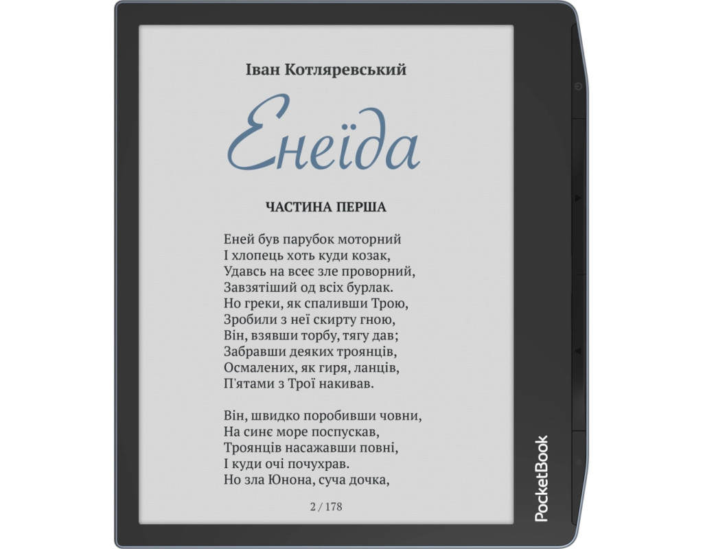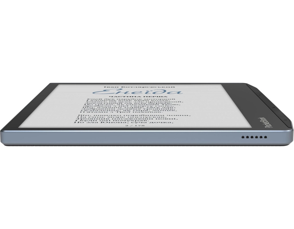 | Флагманський рідер із захистом від води Електронна книга PocketBook 700 Era Color з 7-дюймовим кольоровим екраном та захистом від води IPX8 допоможе вам із задоволенням читати у будь-якому місці та у будь-який час. Функція SMARTlight дозволяє вибирати колір і рівень підсвічування для комфортного читання. Завдяки оптимальним габаритам та бічним кнопкам управління ви легко впораєтеся з налаштуваннями екрану. Підтримка 6 аудіоформатів, вбудований динамік та Bluetooth дозволяють слухати аудіокниги зручним для вас способом. Комфортний дизайнКористуйтеся електронною книгою вдома та в подорожах. Завдяки продуманому дизайну, оптимальним габаритам та бічній панелі керування вам забезпечений комфорт під час читання у будь-якому місці. Вбудований G-сенсор відповідає за ротацію екрана, дозволяючи вам вибрати між горизонтальним та вертикальним розташуванням тексту. Екран E Ink7-дюймовий кольоровий екран E Ink Kaleido 3 візуально нічим не відрізняється від паперу, тому будь-яке читання буде максимально комфортним та безпечним для зору. Оцініть високу роздільну здатність, яка на 50% краща, ніж у попередніх моделей, а також відмінну кольоропередачу кольорових зображень. Налаштування підсвічуванняSMARTlight автоматично налаштовує не лише яскравість, а й колірну температуру екрана залежно від часу доби. Ви також зможете самостійно регулювати налаштування яскравості та відтінку підсвічування, не відриваючись від читання. При цьому тепле жовте освітлення SMARTlight ідеально підходить для читання перед сном, а холодне біле світло краще використовувати для денного читання. Прослуховування аудіокнигПідтримка 6 аудіоформатів, вбудований динамік і Bluetooth перетворюють ваш класичний рідер на зручний девайс для прослуховування аудіокниг. Ви можете слухати книги через динамік або підключати навушники через Bluetooth. Завдяки функції Text-to-Speech будь-який файл можна легко перетворити на аудіодоріжку: перемикайтеся з режиму читання в режим прослуховування, при якому тексти озвучуються приємним природним голосом. Захист від водиPocketBook 700 Era Color ідеально підійде для відпустки на пляжі. Захист від води за стандартом IPX8 дозволяє не переживати через підвищену вологість: гаджет витримує занурення у воду на глибину до 2 метрів протягом 60 хвилин. 25 форматів в одному рідеріPocketBook 700 Era Color підтримує всі популярні книжкові формати, а також графічні формати CBR та CBZ, що дозволяють читати комікси та манга. |
