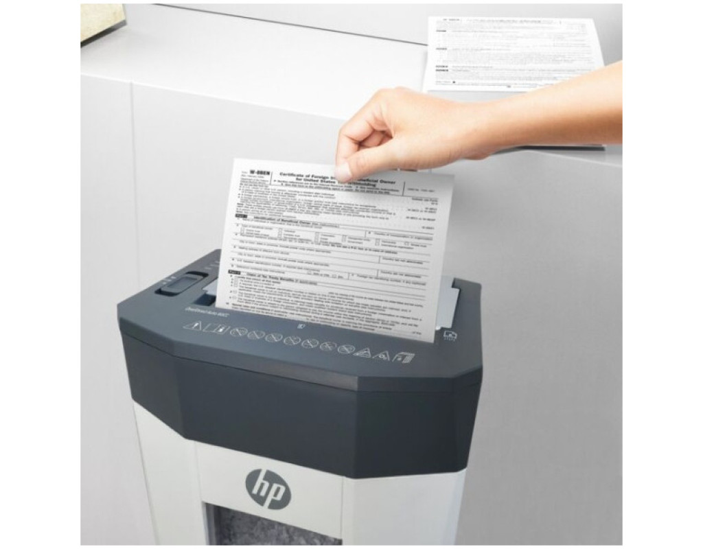 Знищувач документів HP OneShred 80CC – чудове рішення для open-space офісів. Високий рівень безпеки P-4 згідно DIN 66399 відповідає вимогам Загального регламенту захисту даних (DSGVO), тому гарантує повну безпеку конфіденційних даних. Знищуйте шредером документи, які містять комерційну таємницю або персональну інформацію, відомості про зарплату, бухгалтерську та податкову звітність тощо. Він ріже документи поперечним зрізом на частинки розміром 4,3х12 мм зі швидкістю 2 м/хв. HP OneShred 80CC підтримує ручну (до 8 аркушів формату А4 щільністю 80 г/м²) і автоматичну (до 80 аркушів формату А4 щільністю 80 г/м²) подачу документів та без проблем впорається з скріпками, скобами та кредитними картками. Безперервний час роботи шредера – 10 хвилин, час охолодження – 40 хвилин. Знищувач документів HP OneShred 80CC оснащений індикаторами перегріву, перевантаження та переповнення кошика для відходів. Оглядове вікно, розташоване у передній частині кошика для відходів, дозволяє легко контролювати рівень його заповнення та вчасно очищати від відрізків. Чотири коліщатка, два з яких можна зафіксувати, роблять шредер мобільним та зручним у користуванні. |