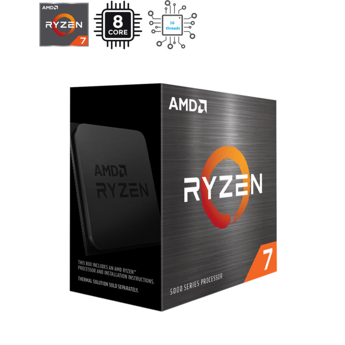 AM4, 8 ядер, 16 потоків, 3.8 GHz, 4.8 GHz, Максимальний TDP - 105 Вт, 7nm, L1: 512KB, L2: 4MB, L3: 32MB, немає, AMD Zen 3, BOX