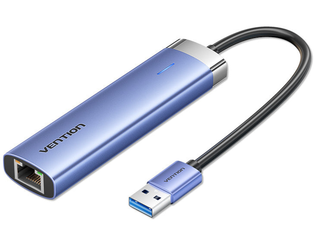 Концентратор VENTION USB 3.0 to USB 3.0x3/RJ45/Type-C Hub Blue Aluminum Alloy 5-in-1 (TGFSB)