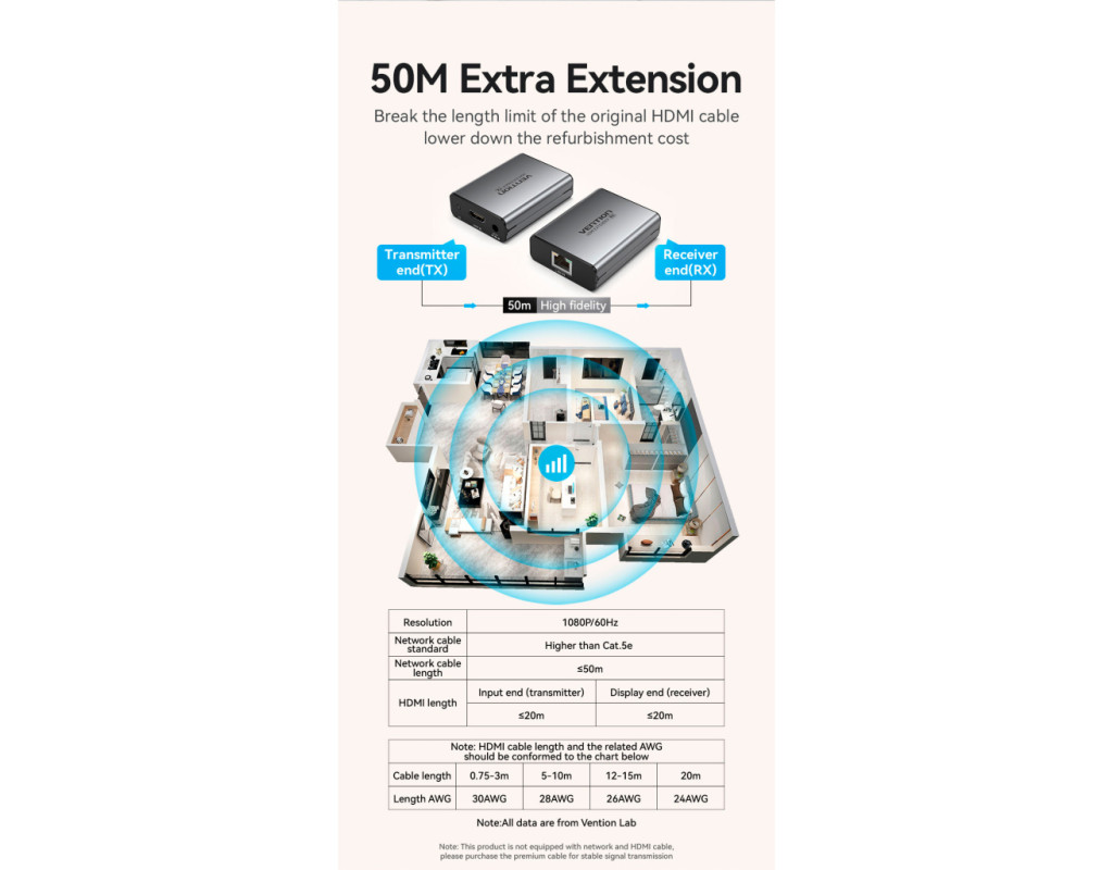 Адаптер HDMI extender 60m V1.4 1080p VENTION (AKGH0-EU)
