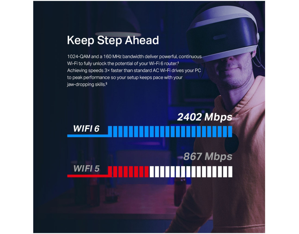 Неперевершена швидкість Wi-Fi 6 - долає гігабітний бар'єр зі швидкістю до 2402 Мбіт/с (5 ГГц) + 574 Мбіт/с (2,4 ГГц)
