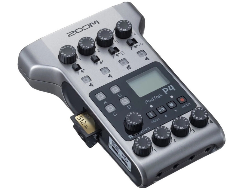 Zoom PodTrak P4 - рекордер для подкастингу. Оснащений 4 роз'ємами XLR для підключення мікрофонів, з можливістю посилення до 70 Дб, а також 4 виходами на навушники. Запис у форматі WAV 16-біт / 44,1 кГц. Можливість підключення телефону за допомогою кабелю TRRS для проведення дистанційних інтерв'ю. Бездротове підключення через Bluetooth за допомогою адаптера Zoom BTA-2 (продається окремо). Запис на карти SD, SDHC та SDXC до 512 ГБ. Сумісний з Android або iOS пристроями. USB-аудіоінтерфейс з двома входами і двома виходами. Робота до 4-х годин від батарейок типу АА (4 шт.) або можливість живлення через USB. У комплекті: PodTrak P4, батарейка типу АА (2шт.) |