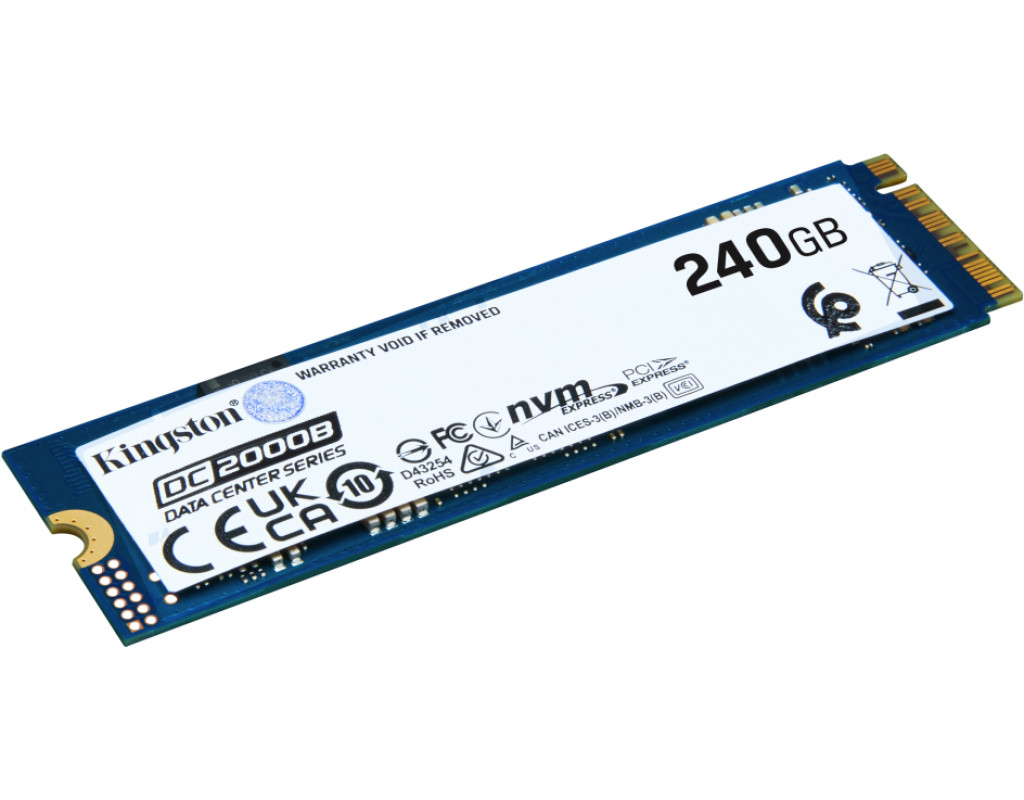 Kingston SEDC2000BM8/960G - високопродуктивний твердотільний M.2 NVMe накопичувач з новітнім інтерфейсом PCIe Gen 4x4 та 112-шаровий 3D TLC NAND флеш-пам'яттю. Він ідеально підходить для використання у високопродуктивних стійкових серверах як внутрішній завантажувальний накопичувач (накопичувачів), дозволяючи зберегти цінні відсіки для дисків з фронтальним завантаженням, а також для використання у спеціалізованих системах, де потрібен високопродуктивний твердотільний M.2 накопичувач із вбудованим апаратним захистом від втрати. живлення (PLP). Новинкою для DC2000B став інтегрований алюмінієвий радіатор, що забезпечує підвищену теплову сумісність широкого спектру систем. DC2000B забезпечує низькі затримки та відмінну стабільність швидкості обміну даними, що дозволяє справлятися з різними робочими навантаженнями - від завантаження операційної системи до високошвидкісного кешування додатків. Накопичувач розрахований на навантаження 0.4 DWPD**** та забезпечений 5-річною гарантією.