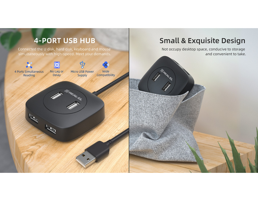USB концентратор REAL-EL HQ-177 – це ідеальне рішення для розширення можливостей підключення ваших пристроїв. Цей концентратор дозволяє збільшити кількість доступних USB портів, забезпечуючи стабільну передачу даних без втрати якості і захист від перешкод. Завдяки функції Plug and Play, він не потребує встановлення додаткових драйверів, що робить його надзвичайно зручним у використанні. Він сумісний з операційними системами Windows, Mac, Chrome та Linux, що забезпечує універсальність. Довжина кабелю становить 1,2 метра, що забезпечує зручність підключення в будь-яких випадках. REAL-EL HQ-177 оснащений чотирма портами USB 2.0, що дозволяють підключати декілька пристроїв одночасно, забезпечуючи швидкість передачі даних до 480 Мбіт/с. Компактний дизайн розміром 60 х 60 х 22 мм та вагою всього 80 грамів робить цей концентратор ідеальним для використання як вдома, так і в офісі. REAL-EL HQ-177 має роз'єм додаткового живлення для забезпечення стабільної роботи всіх підключених пристроїв. Підключіть USB концентратор REAL-EL HQ-177 до вашого комп'ютера чи ноутбука і насолоджуйтеся зручністю та ефективністю роботи з численними пристроями одночасно. |