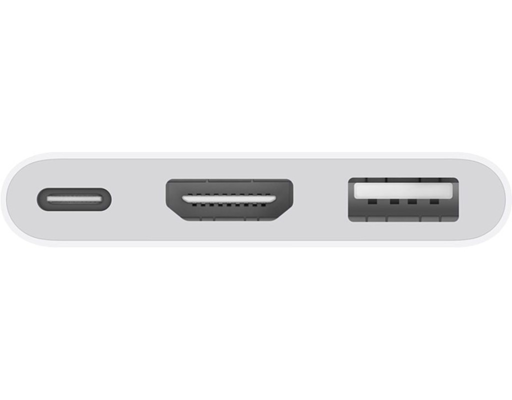 Багатопортовий цифровий аудіо-відео адаптер USB-C дає змогу під'єднати комп'ютер Mac, iPad або iPhone з роз'ємом USB-C до дисплея HDMI, а також підключити стандартний USB-пристрій і зарядний кабель USB-C. Цей адаптер дає змогу дзеркально відобразити комп'ютер Mac, iPad або iPhone з інтерфейсом USB-C на телевізорі або дисплеї з інтерфейсом HDMI. |