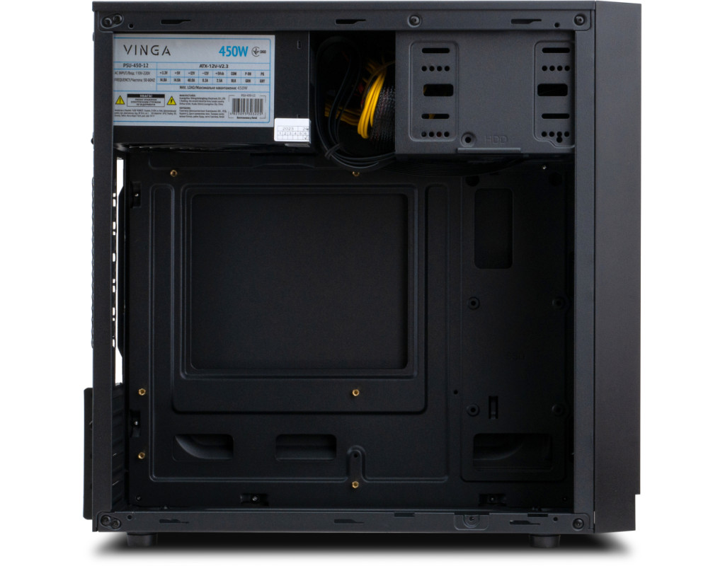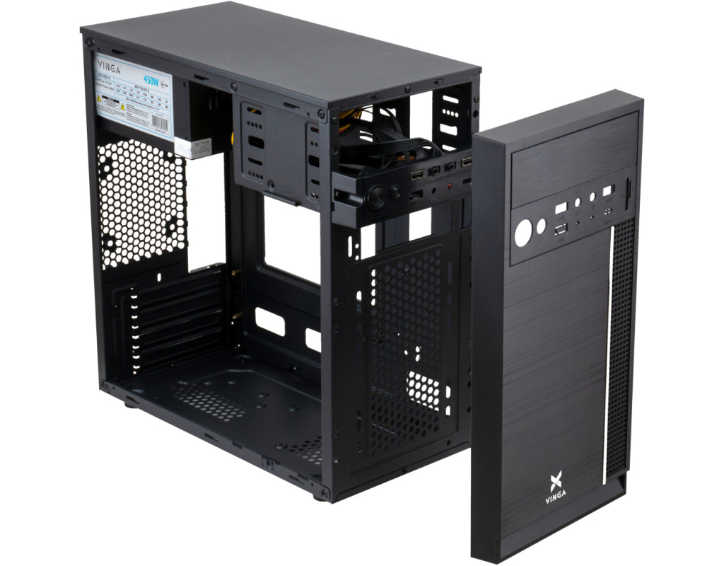 Корпус CS116 розроблений для доукомплектування персональних комп'ютерів середньої потужності. Внутрішній простір моделі сегментируется на 4 слоти PCI, а також 2 зовнішніх відсіки і 4 внутрішніх. У тильній, фронтальної та бокової частинах конструкції передбачені місця для установки додаткових кулерів діаметром 8 і 12 см. Вивід гарячого повітря за межі системного блоку здійснюється через вентиляційні решітки, створені методом перфорирувания панелей. Стінки і внутрішні деталі корпуса виготовлені з високоякісної листової сталі товщиною 0.4 мм. Модель комплектується блоком живлення потужністю 450Вт, встановленим у верхньому сегменті блоку. Завдяки наявності портів USB 2.0 і 2 аудіовходів, робота з комп'ютером, зібраним на базі цього корпусу, буде досить комфортною для користувача. Конструкційні особливості коробки дозволяють використовувати в ній материнські плати ATX Mini і Micro. Допустима висота охолоджувальних пристроїв для процесорів, встановлених в CS116, становить 15 см. Корпус сумісний з високопродуктивними відеокартами довжиною до 33 см. Стійкість у вертикальній позиції на гладких поверхнях виробу забезпечують чотири циліндричних опорних елемента. |