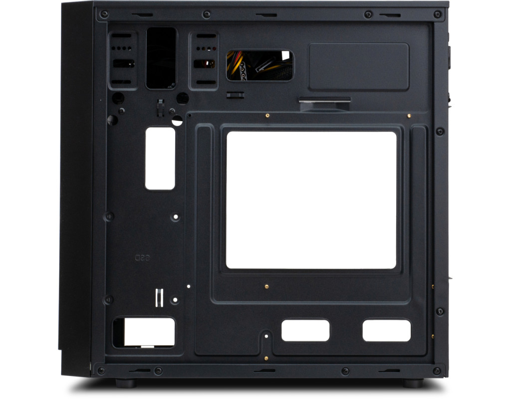 Корпус CS116розроблений для доукомплектування персональних комп'ютерів середньої потужності. Внутрішній простір моделі сегментируется на 4 слоти PCI, а також 2 зовнішніх відсіки і 4 внутрішніх. У тильній, фронтальної та бокової частинах конструкції передбачені місця для установки додаткових кулерів діаметром 8 і 12 см. Вивід гарячого повітря за межі системного блоку здійснюється через вентиляційні решітки, створені методом перфорирувания панелей. Стінки і внутрішні деталі корпуса виготовлені з високоякісної листової сталі товщиною 0.4 мм. Модель комплектується блоком живлення потужністю 500 Вт, встановленим у верхньому сегменті блоку. Завдяки наявності портів USB 2.0 і 2 аудіовходів, робота з комп'ютером, зібраним на базі цього корпусу, буде досить комфортною для користувача. Конструкційні особливості коробки дозволяють використовувати в ній материнські плати ATX Mini і Micro. Допустима висота охолоджувальних пристроїв для процесорів, встановлених в CS116, становить 15 см. Корпус сумісний з високопродуктивними відеокартами довжиною до 33 см. Стійкість у вертикальній позиції на гладких поверхнях виробу забезпечують чотири циліндричних опорних елемента. |