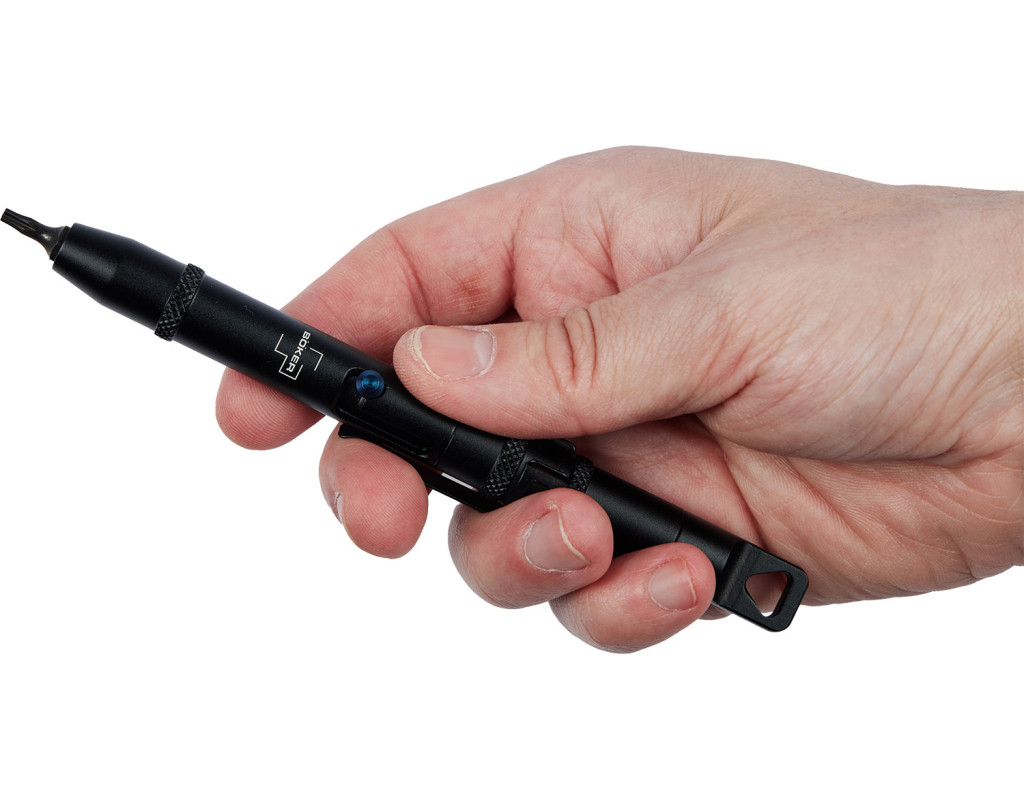 Boker Plus Tool Pen - це надійний інструмент, для щоденного носіння та ремонту будь-де та будь-коли. Виготовлений з високоміцного алюмінію 6061, кишеньковий інструмент має привабливий чорний колір та надзвичайно малу вагу. Синій анодований важіль затворного механізму для висування та втягування тримача біт стандартного розміру утворює вдалий контраст з корпусом, а в задній частині інструменту є місце для зберігання додаткової біти. Спеціально для любителів ножів в комплект вже включені дві двосторонні біти Torx (T6/T8 та T9/T10), які підходять для багатьох ножових гвинтів. Boker Plus Tool Pen оснащений практичною кліпсою для перенесення та отвором для ремінця або темляка. |