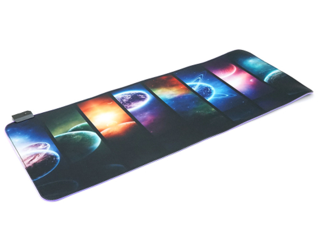 Тканинний килимок для миші "Planets" з бічним прошивкою та RGB підсвічуванням – ідеальне рішення для геймерів та любителів стильних аксесуарів. Килимок має розміри 300*800 мм, завтовшки 3 мм, що забезпечує комфортне використання. Підсвічування RGB створить атмосферу справжнього космосу і додасть цікавого акценту на вашому ігровому столі. |