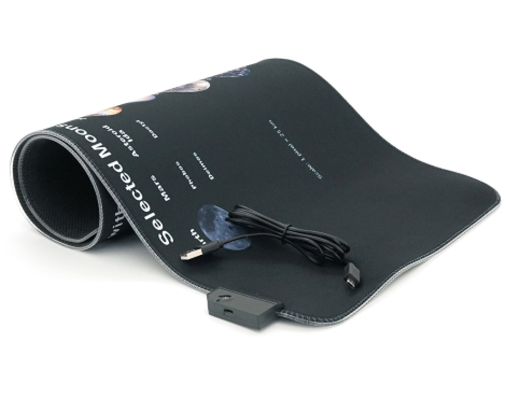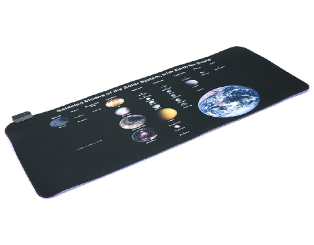 Килимок для миші "Planets scales" - це тканинний килимок з бічним прошивкою, товщиною 3 мм і RGB підсвічуванням. Він оснащений живленням через USB кабель довжиною 1,8 м і поставляється у зручній коробці. |