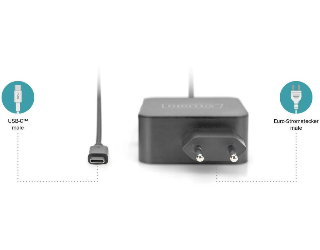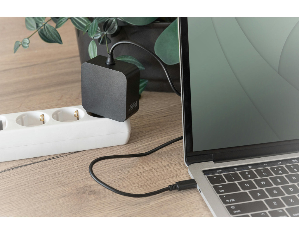 Адаптер живлення для ноутбука DIGITUS USB-C PD - це надзвичайно тонка і компактна заміна несправним або загубленим оригінальним адаптерам живлення. Він також ідеально підходить для використання в якості другого адаптера живлення в офісі, під час подорожей або вдома. Зарядний пристрій PD3.0 потужністю 65 Вт розроблено для ноутбуків, смартфонів, планшетів та ігрових консолей з роз'ємом USB Type-C. Ноутбуки та сам порошковий адаптер захищені від короткого замикання, перегріву, стрибків напруги та надлишкового струму. Особливості:
