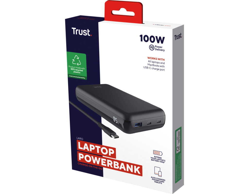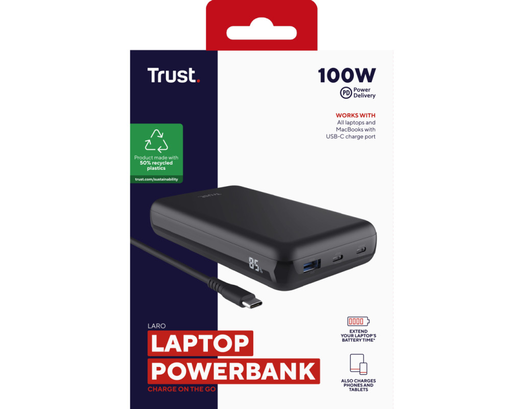 Потужний 100-ватний павербанк для швидкого заряджання ноутбука USB-C або MacBook на ходу. Менше пластику, більше потужностіЗарядіть свій ноутбук та планету за допомогою Laro 100W Laptop Powerbank. Виготовлений з екологічно чистого пластику, який на 50% складається з перероблених матеріалів, цей швидкозарядний павербанк може подовжити час автономної роботи вашого ноутбука вдвічі, а також заряджати до 3 пристроїв одночасно через 2 порти USB-C та 1 порт USB-A. |
